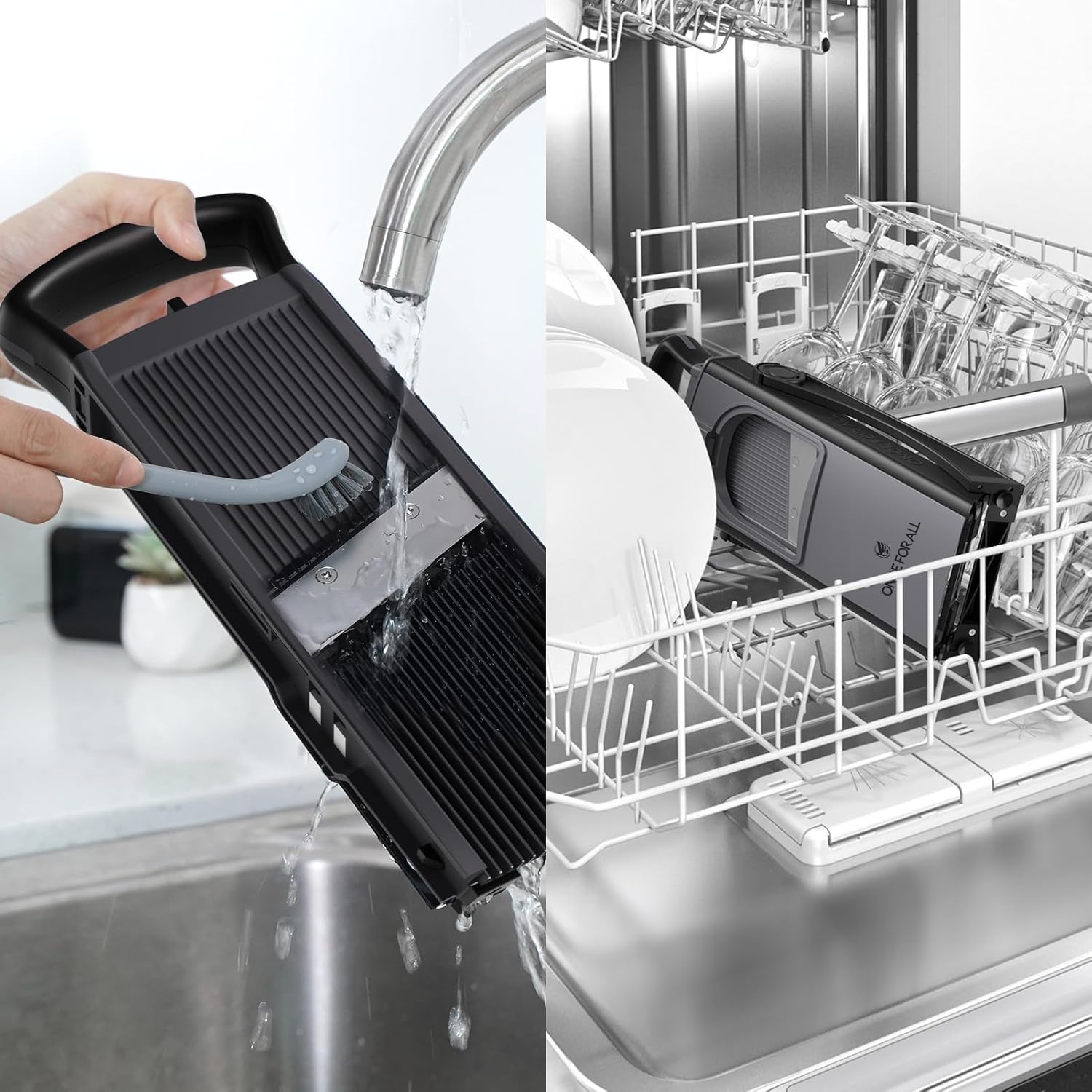 ONCE FOR ALL Safe Mandoline Slicer For Kitchen, Biger Size, Adjustable Vegetable Chopper Food Slicer Potato French Fry Cutter with Peeler, Detachable, Kitchen Chopping Artifact (Black)