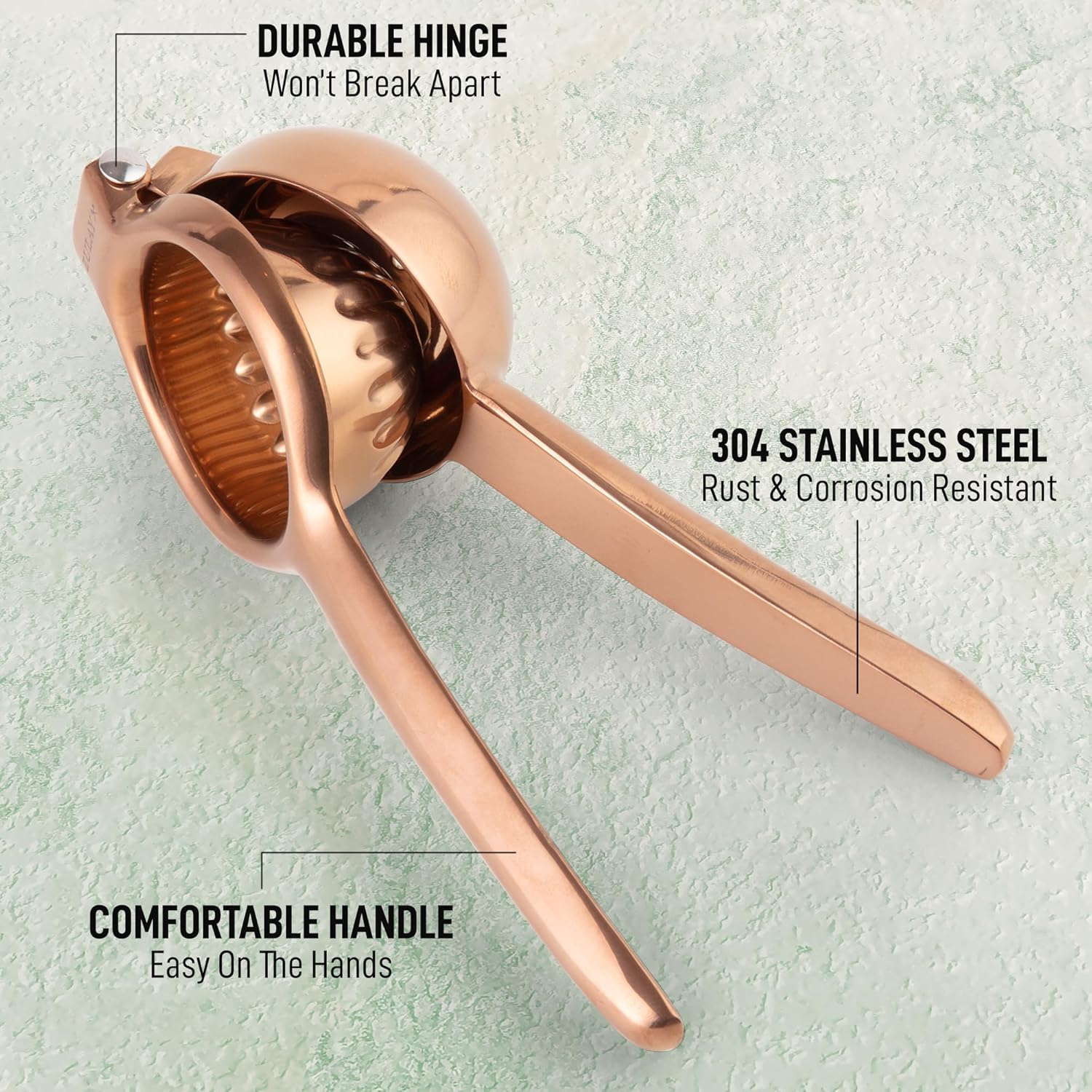 - MADE WITH HIGH QUALITY STAINLESS STEEL: This Easy-To-Use and Easy-To-Store Lemon Squeezer is built like a tank. No more bulky hard-to-clean juicers crowding the decor of your home bar or kitchen this citrus press has you covered. Whether you’re a chef or simply want a pampered squeeze you can be drinking lemonade in a just seconds.