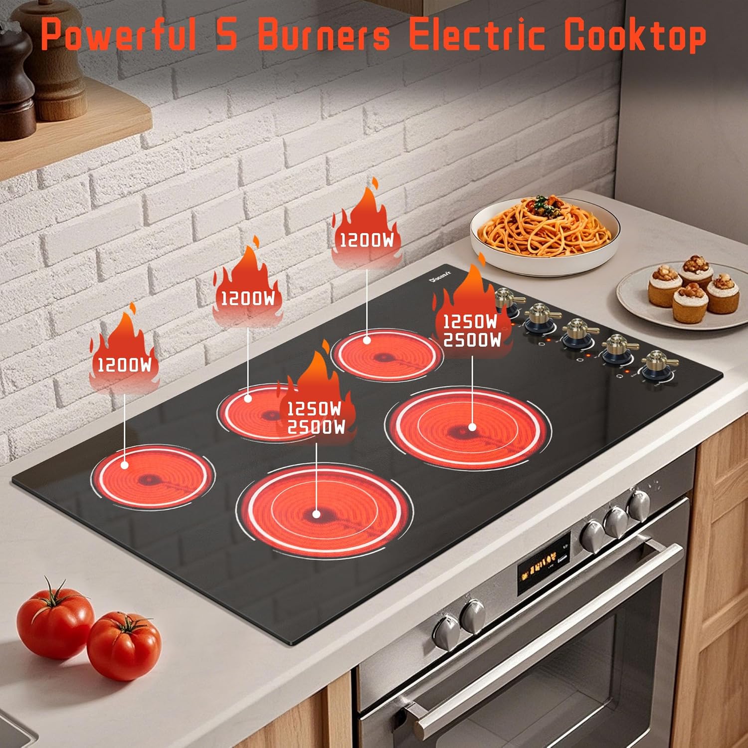 - 🏰| Safety 5 Burners Electric Cooktop | Disaenvir 36in electric stove is designed to meet US Norm specifications and has no electromagnetic radiation, harmless to the body. To ensure safety, Disaenvir ceramic cooktop is equipped with over-temperature protection, auto shutdown protection, and residual heat warning. A safety stove top is a great choice for pregnant women, mom, and the elderly.