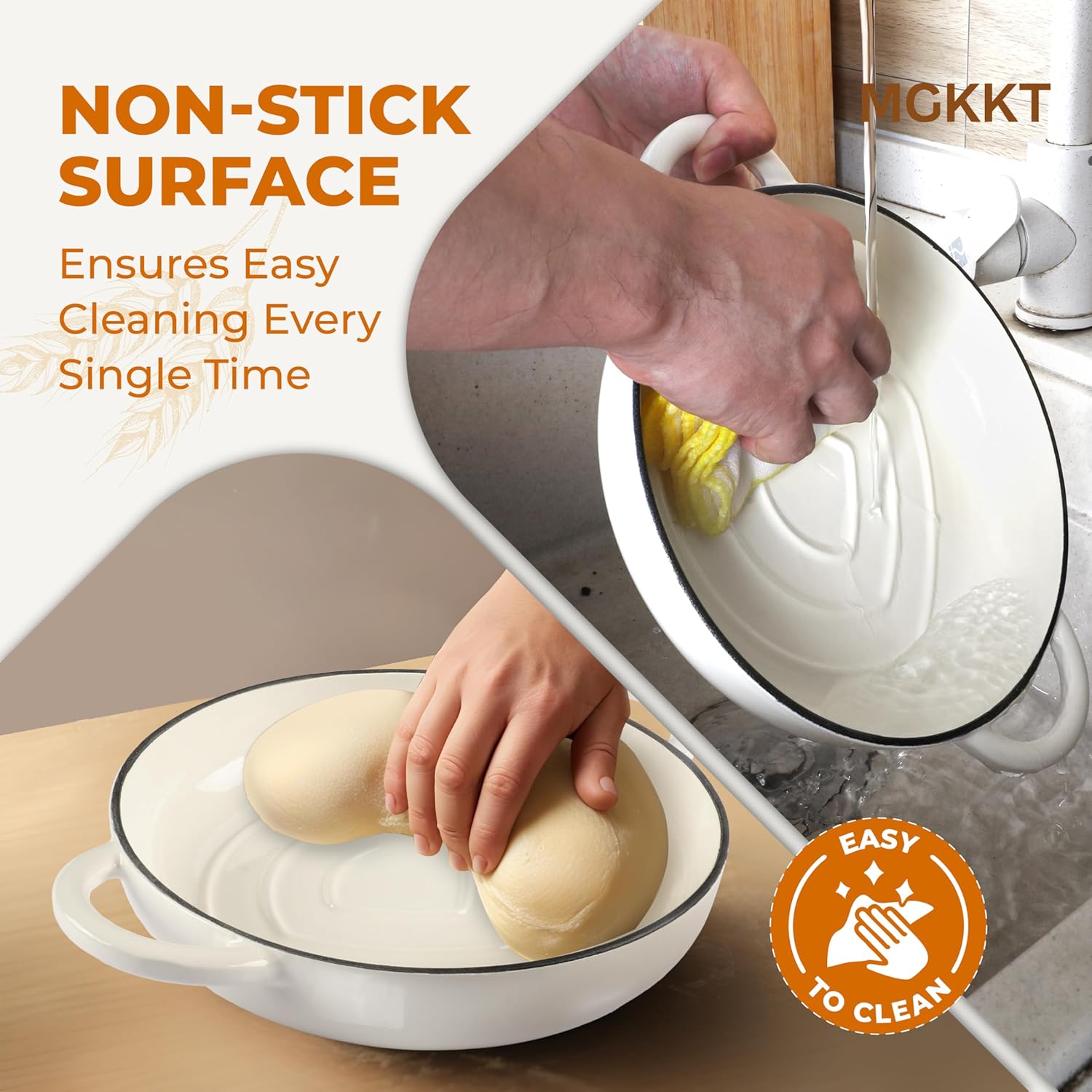 MGKKT Enameled Cast Iron Dutch Oven Pot for Sourdough Bread Baking, 5 Quart Non Stick Cloche Homemade Bread Oven with Lid, Baking Gifts, Alpine Oat White