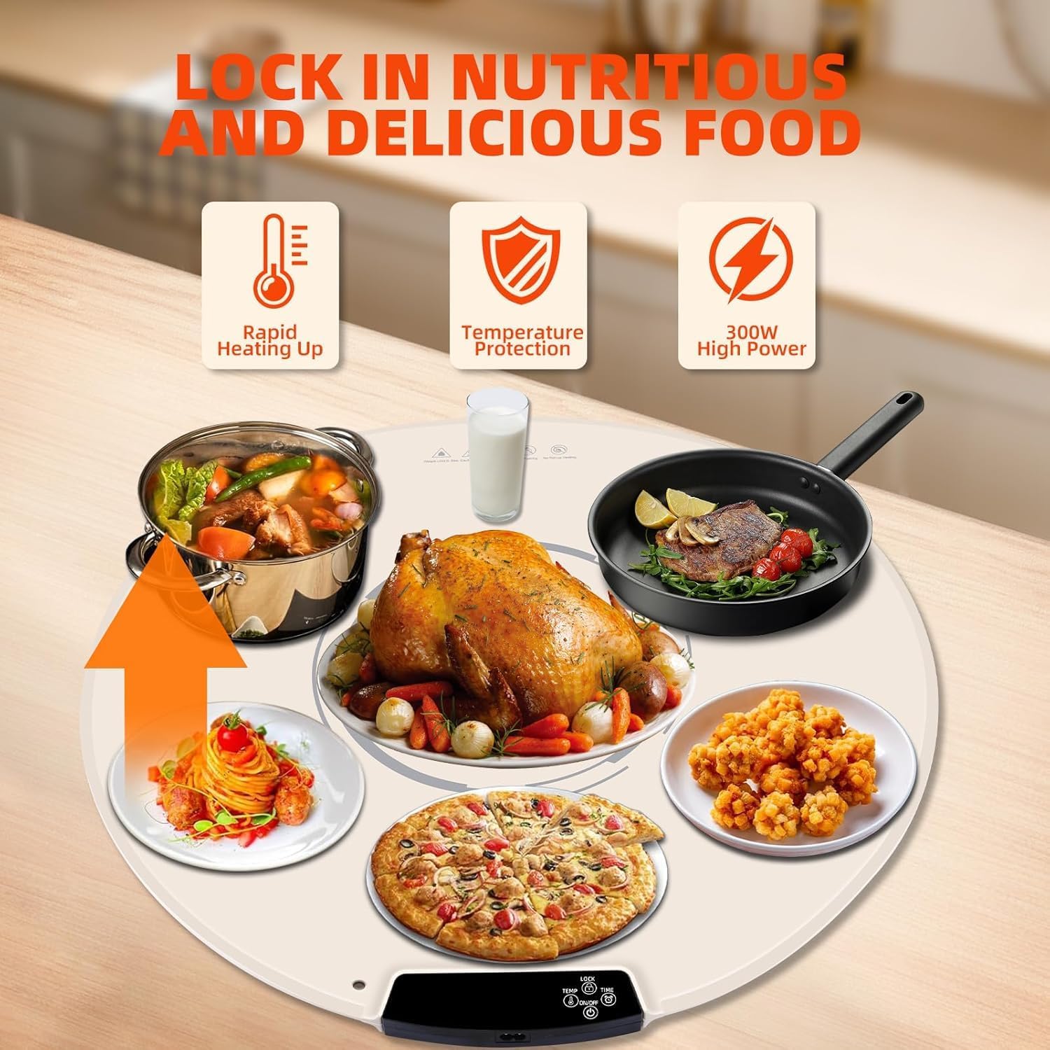 - 【Child Lock Design】 To ensure safety, the warming mat features a child lock design to prevent accidental misuse by children and a "lift-up" design on the bottom to allow heat dissipation, making it suitable for tables of different materials and textures. Enjoy peace of mind while keeping your food warm with this food warmer mat.