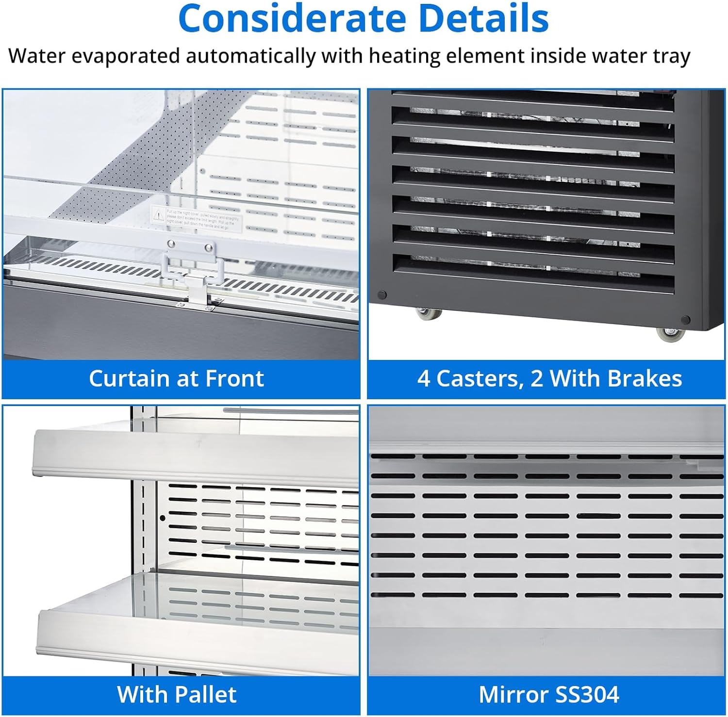 7.77 Cu.Ft. Commercial Display Refrigerator, Countertop Pastry Display Case with Glass Door and Casters, Merchandiser Refrigerator with Adjustable Shelves for Cafe, Restaurant, Store, Bar, Bakery