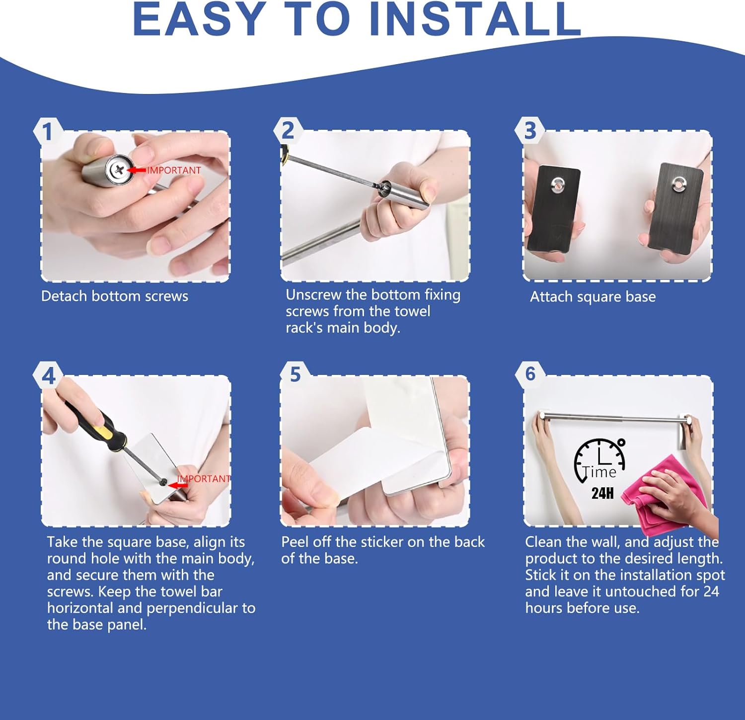 - Modern And Stylish Design: The Towel Bar Features a Sleek And Modern Design With Concealed Screws. It Not Only Covers Old Holes But Also Allows For Adjustable Installation Angles And Lengths, Ensuring a Clean And Stylish Appearance On Your Wall.