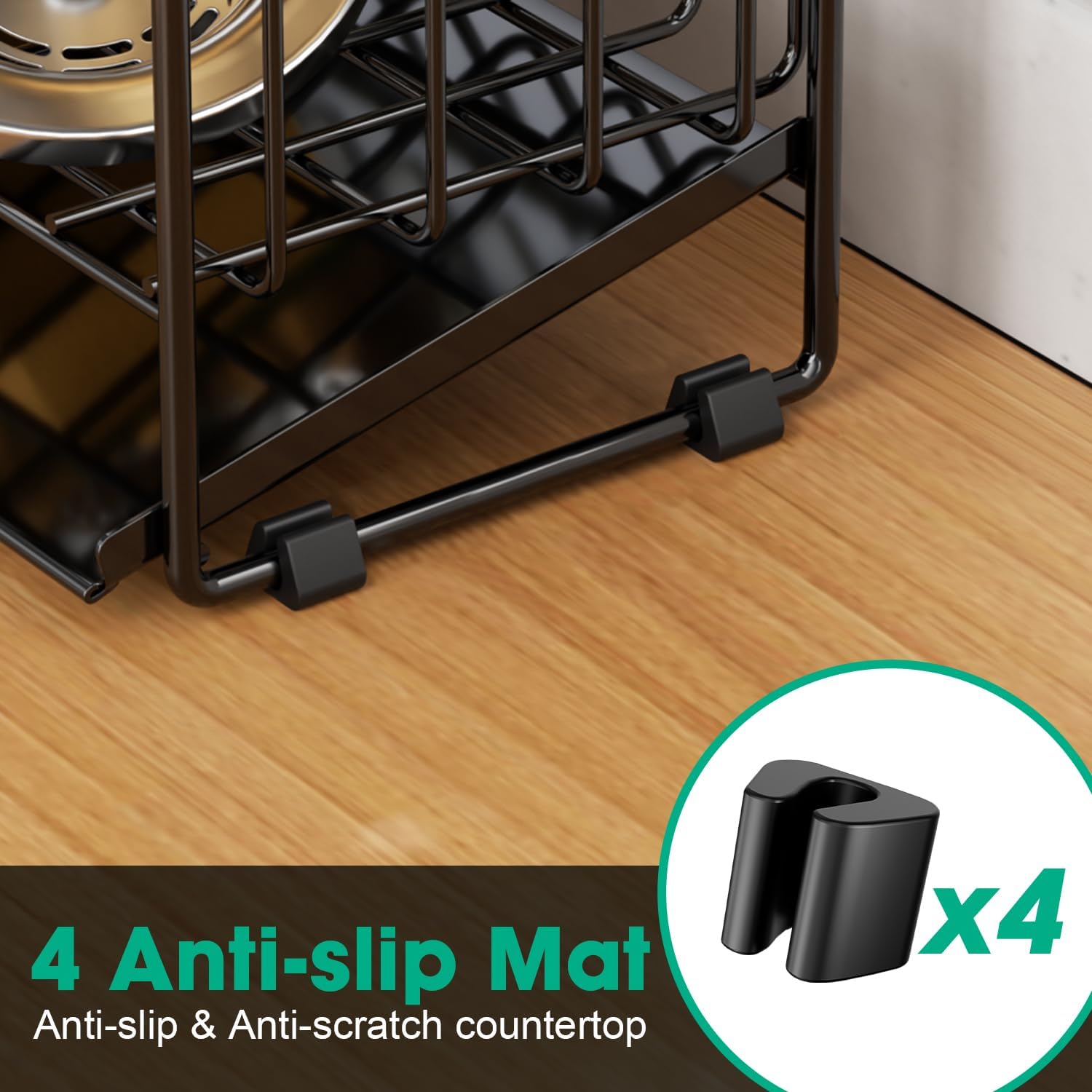 - 【High Quality and Sturdy Material】 Amawarm kitchen sink organizer is made of high quality stainless steel with strong load-bearing capacity, which can effectively prevent deformation. The surface is coated with a black rust-resistant coating, durable and rust-free for a long time.