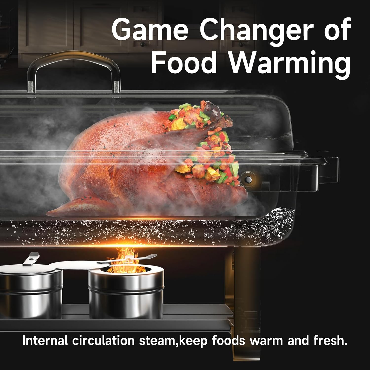 - [KEEP YOUR FOOD WARM AND READY AT ANY BUFFET OR PARTY] Perfect for buffet servers and warmers setups, this 9.5QT chafing dish maintains consistent heat to keep your food warm and appetizing throughout any party, celebration, or catered event.