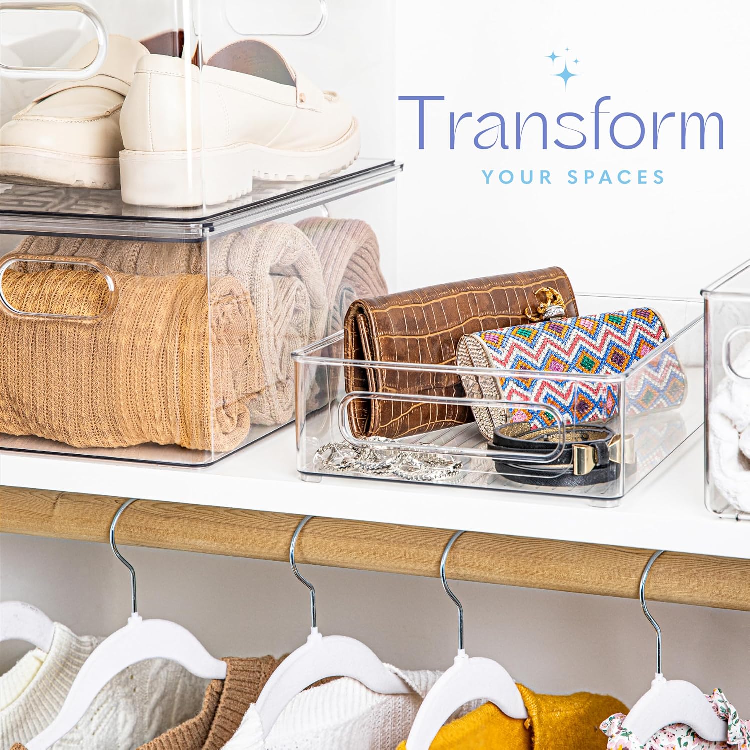- Easy Visibility and Convenient Handles: The clear plastic design allows you to quickly see and access your stored items without any hassle. Built in grip handles provide a secure and comfortable hold, making it easy to pull out the bin and grab what you need. The open top design adds conveniece, perfect for busy families, organizers and anyone looking to organize their space.