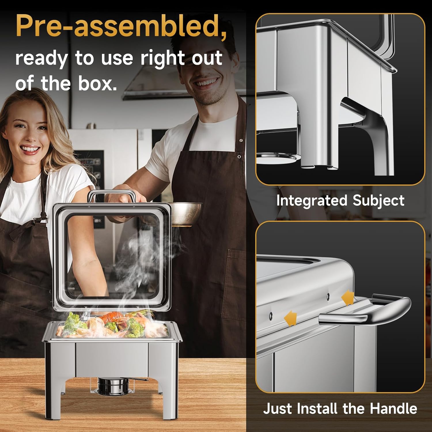 - Space-Saving 6QT Capacity – Ideal for Smaller Gatherings Compact but capable, this square chafing dish is great for intimate parties, brunches, or small-scale catering. Easy to arrange in buffet lines.