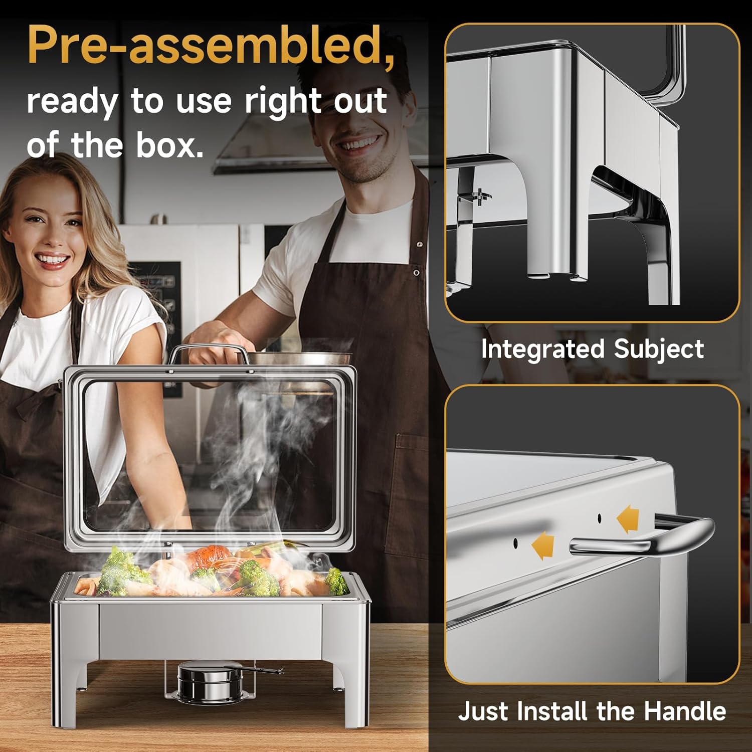 - Food-Grade 304 Stainless Steel + Water Level Indicator Durable and rust-resistant, this food warmer for parties buffet setup features a clearly marked water guide for safe heating and long-lasting use.