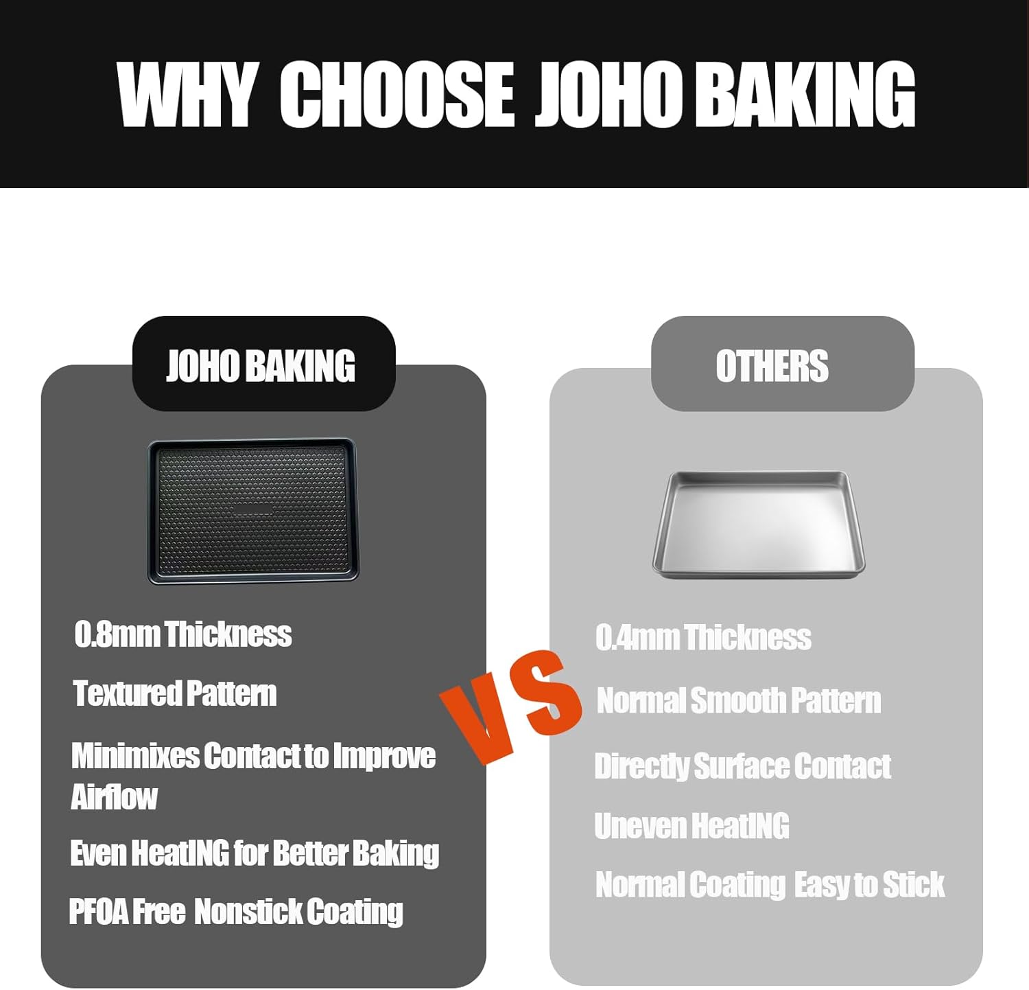 - MICRO-TEXTURED BAKING SHEETS – Baking sheets set features unique design with hexagonal surface,minimizes surface contact,promotes airflow and evenly heating baked goods. Elevate kitchen aesthetics with food-safe, non-toxic dark gray coating. BPA-free, ideal for gifting and stylish bakeware collections. Meet most of your daily oven pans need.
