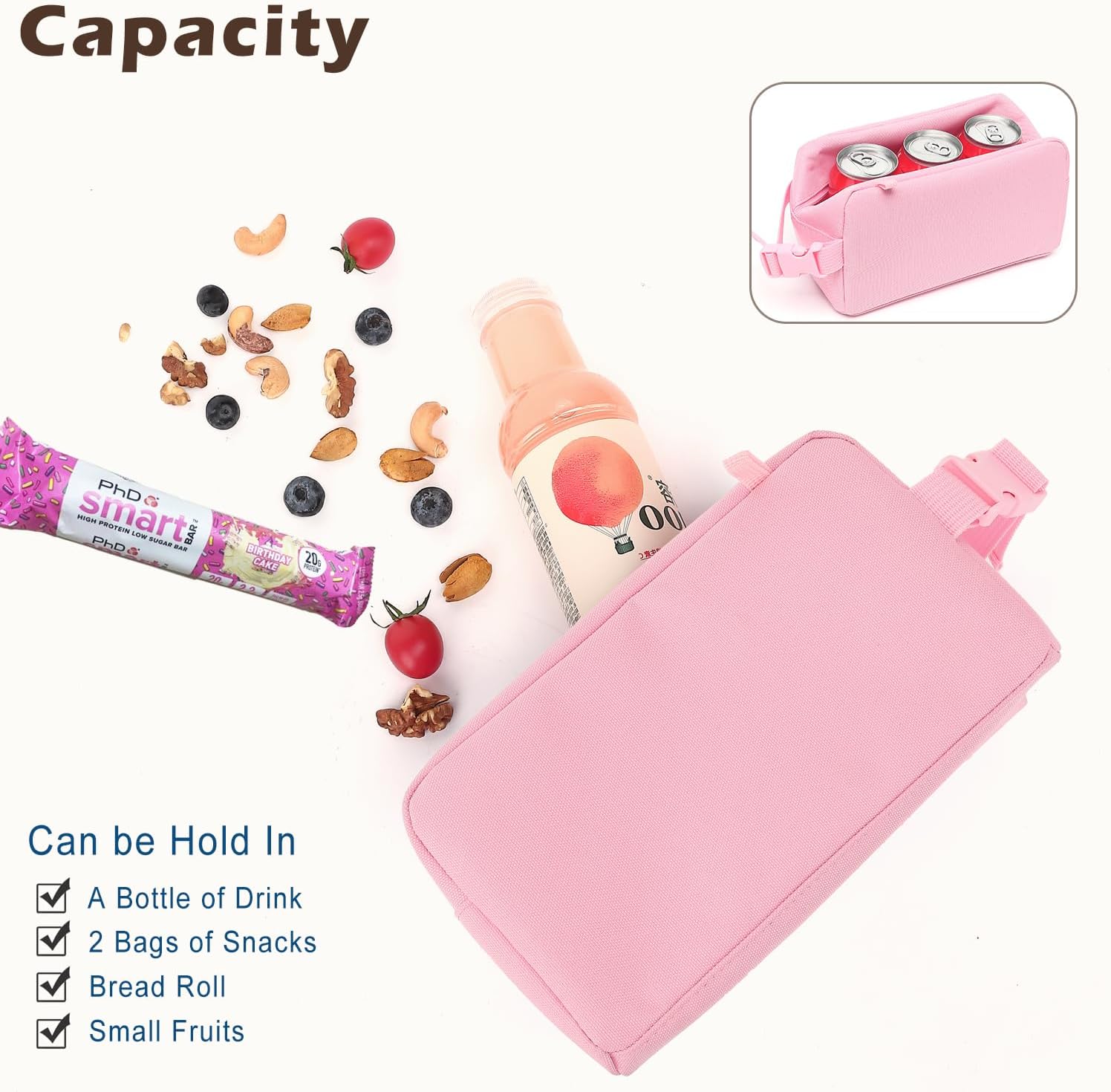 FlowFly Small Insulated Lunch box Portable Soft Bag Mini Cooler Thermal Meal Tote Kit with Buckle for Work, PinkWithBuckle