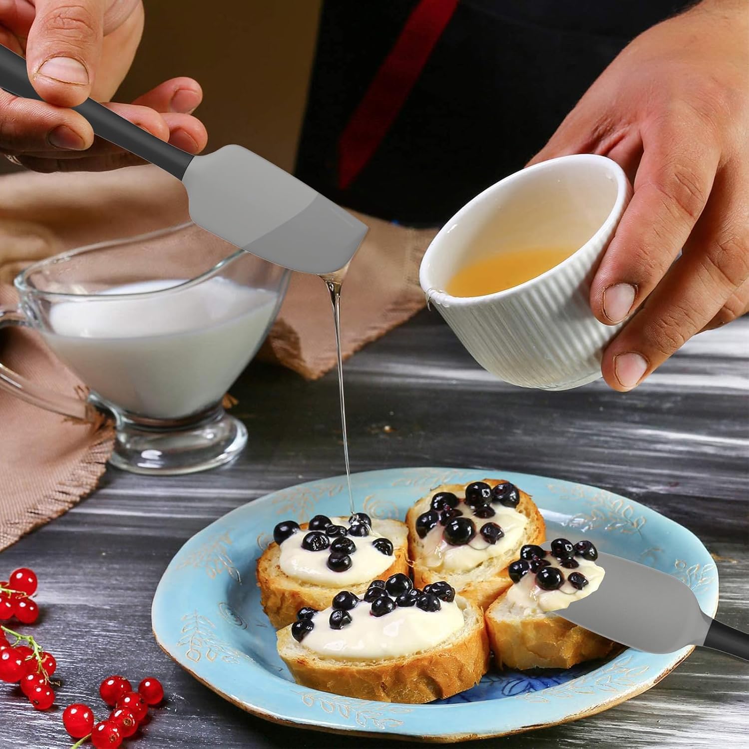 - [Stronger & More Flexible]: Coukre Silicone Spatula has a reinforced plastic core inside for extra strength. and they are flexible tip thoroughly scrape the sides and bottoms of the pots and pans without scratching