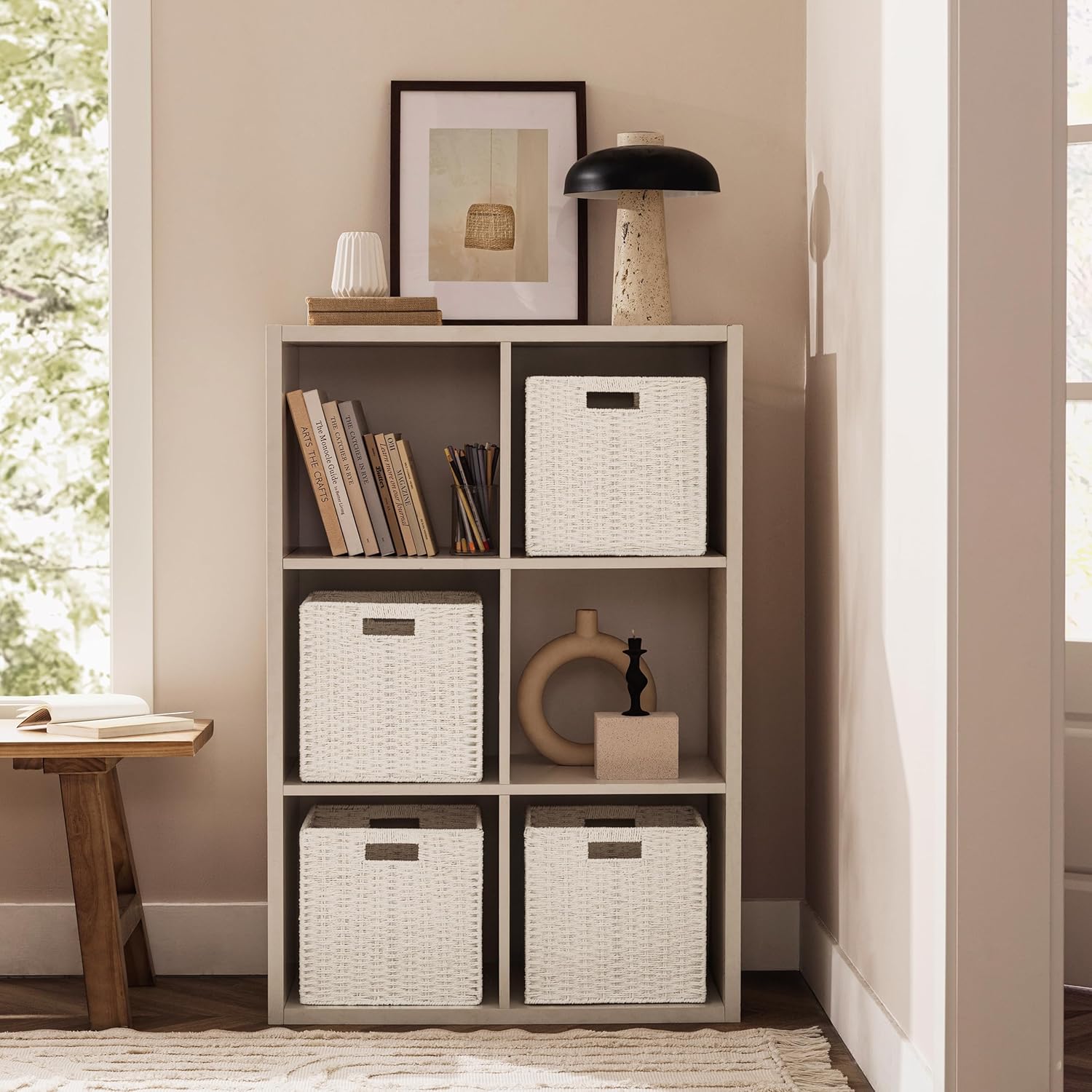 - Convenient handle:These cube storage bins have built-in handles making them easy to pull on and off of shelves or cubbies. The handles on both sides are not only pretty but provide the convenience to bring along with you anywhere.
