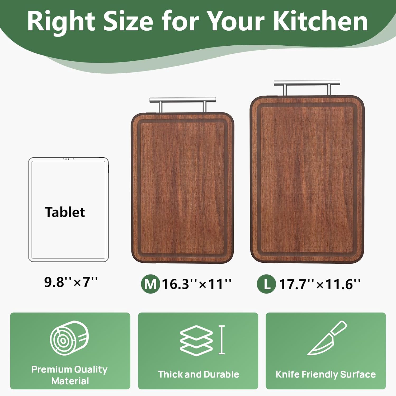 - Effortless Maintenance & Smart Features: Labeta cutting boards clean easily with just soap and water! The deep juice groove traps liquids and debris, keeping counters tidy. Sand-finished ebony resists knife marks, while the stainless steel hanging handle offers space-saving storage or portability for kitchens, RVs, or camping.