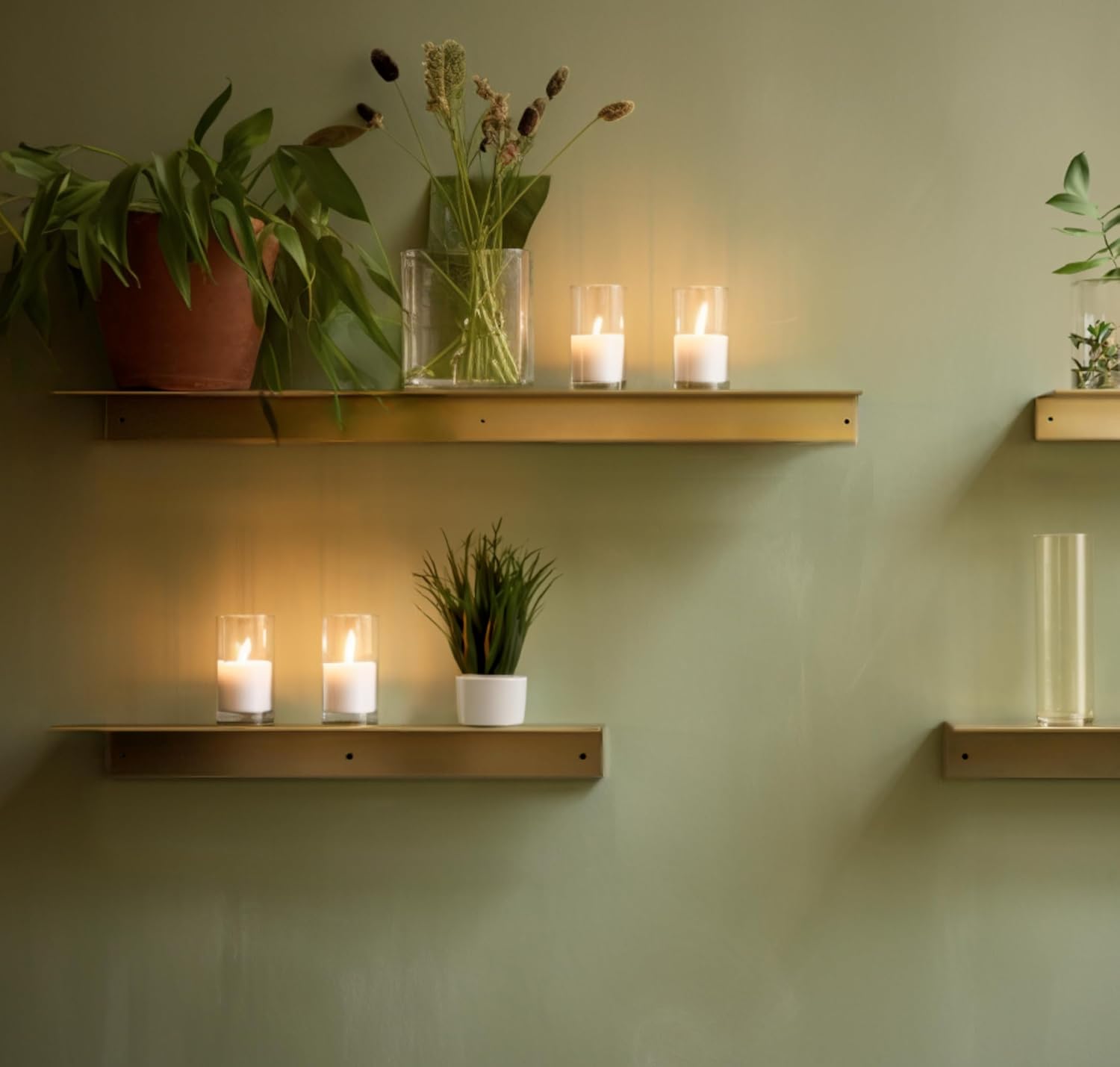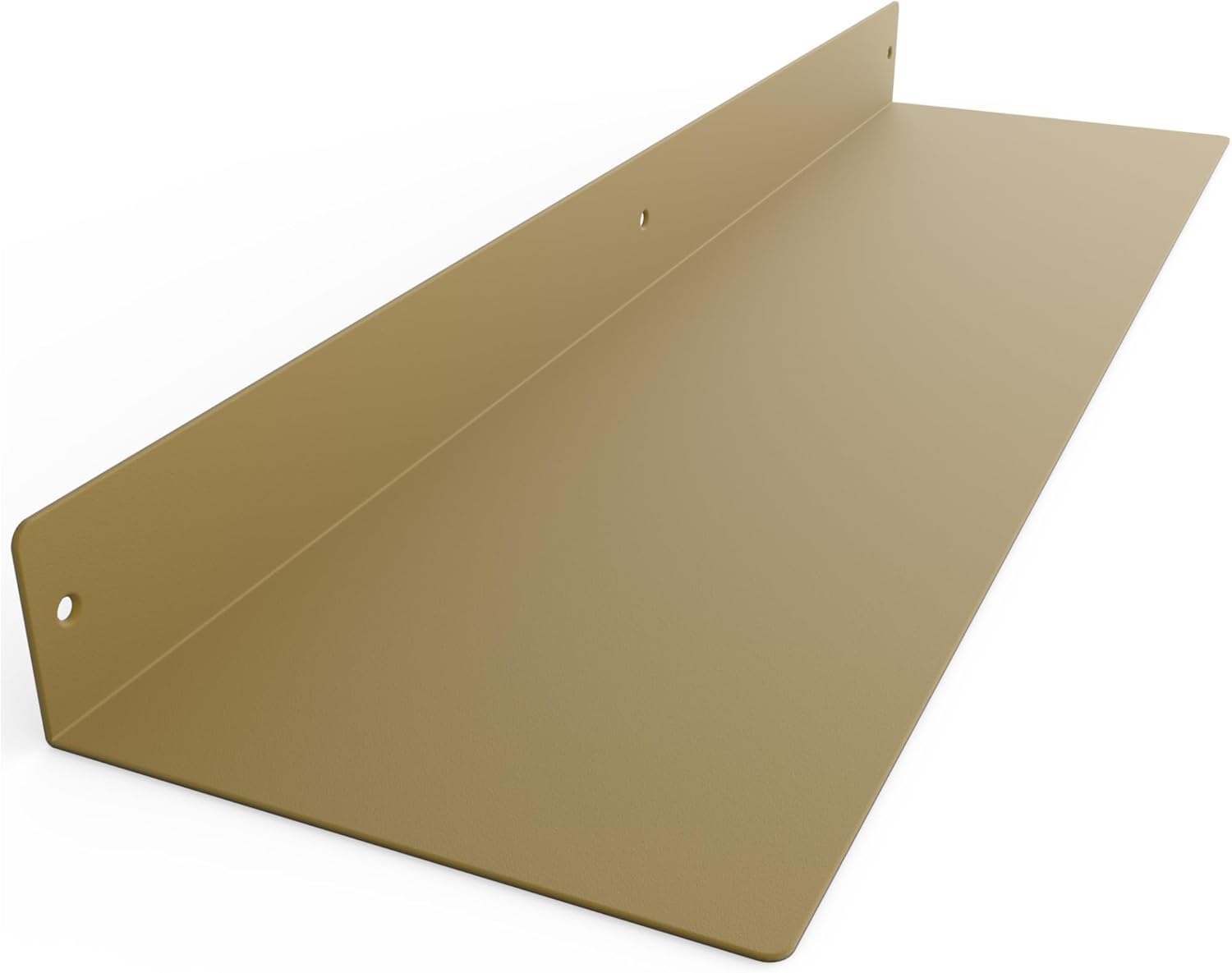 - DIMENSIONS & DETAILS: Measuring 30-inches long x 8-inches in depth, our steel floating shelf is made from 14 gauge raw steel and professionally powder coated gold. The weight of the shelf is 6.5 LBS. It's perfect for displaying books, plants, bottles, picture ledges, and retail displays