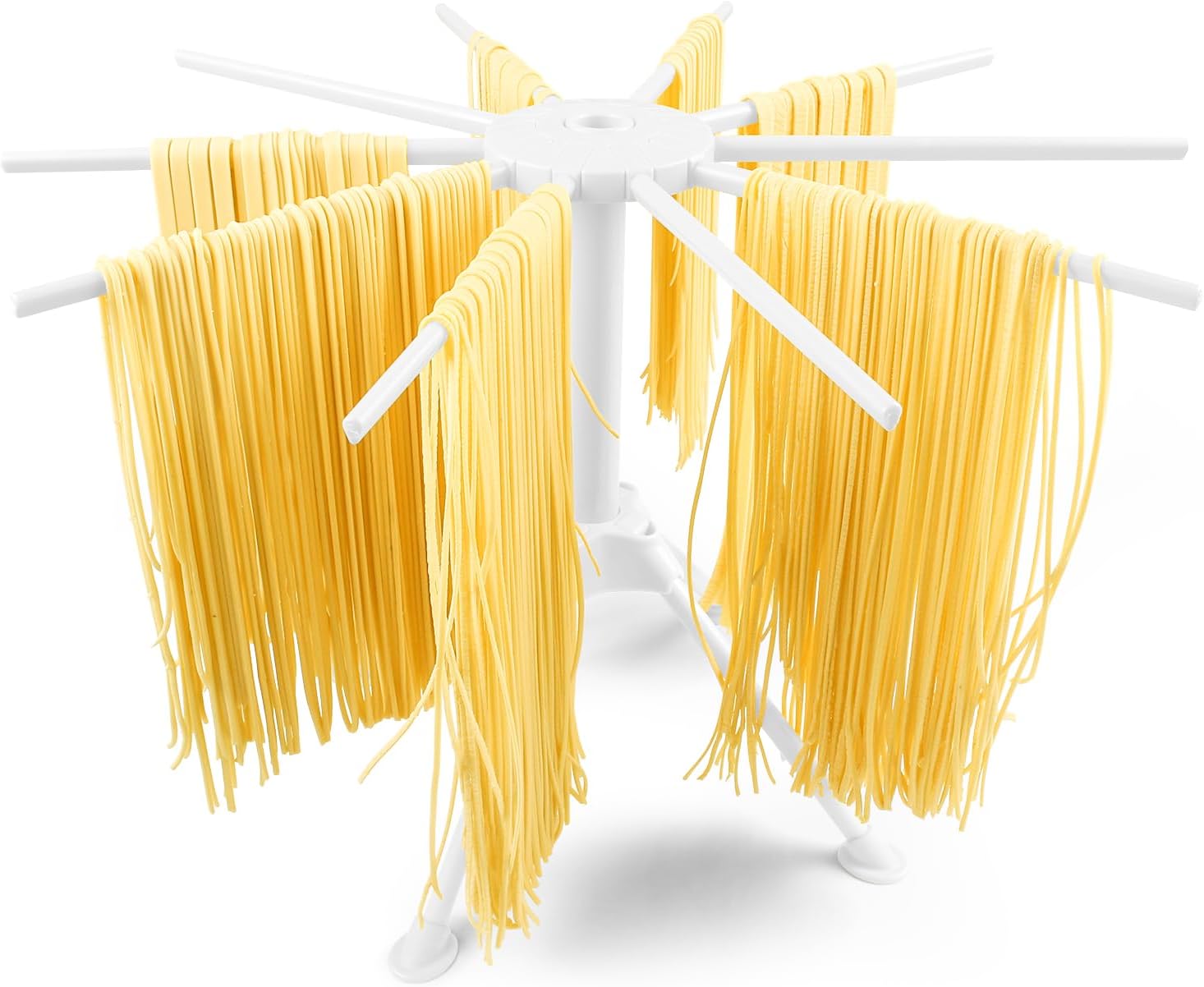 KEOUKE Collapsible Pasta Drying Rack - Foldable 10-Rod Pasta Dryer, Compact & Sturdy Design for Homemade Spaghetti Noodles, Easy Storage, Plastic