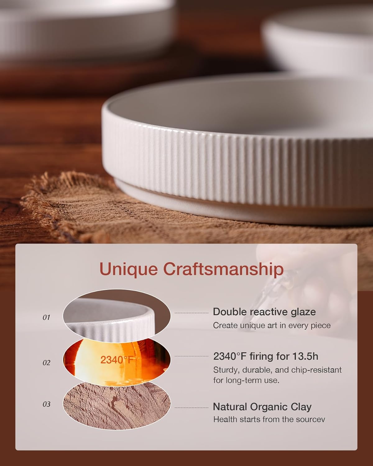 - HANDCRAFTED ELEGANCE: Each of our plate bowls is a testament to the skill and creativity of our artisans, handcrafted and glazed with a DOUBLE REACTIVE GLAZE that brings out a distinct, dreamy color. The hues may differ on your screen, showcasing the one-of-a-kind beauty of our artisanal process