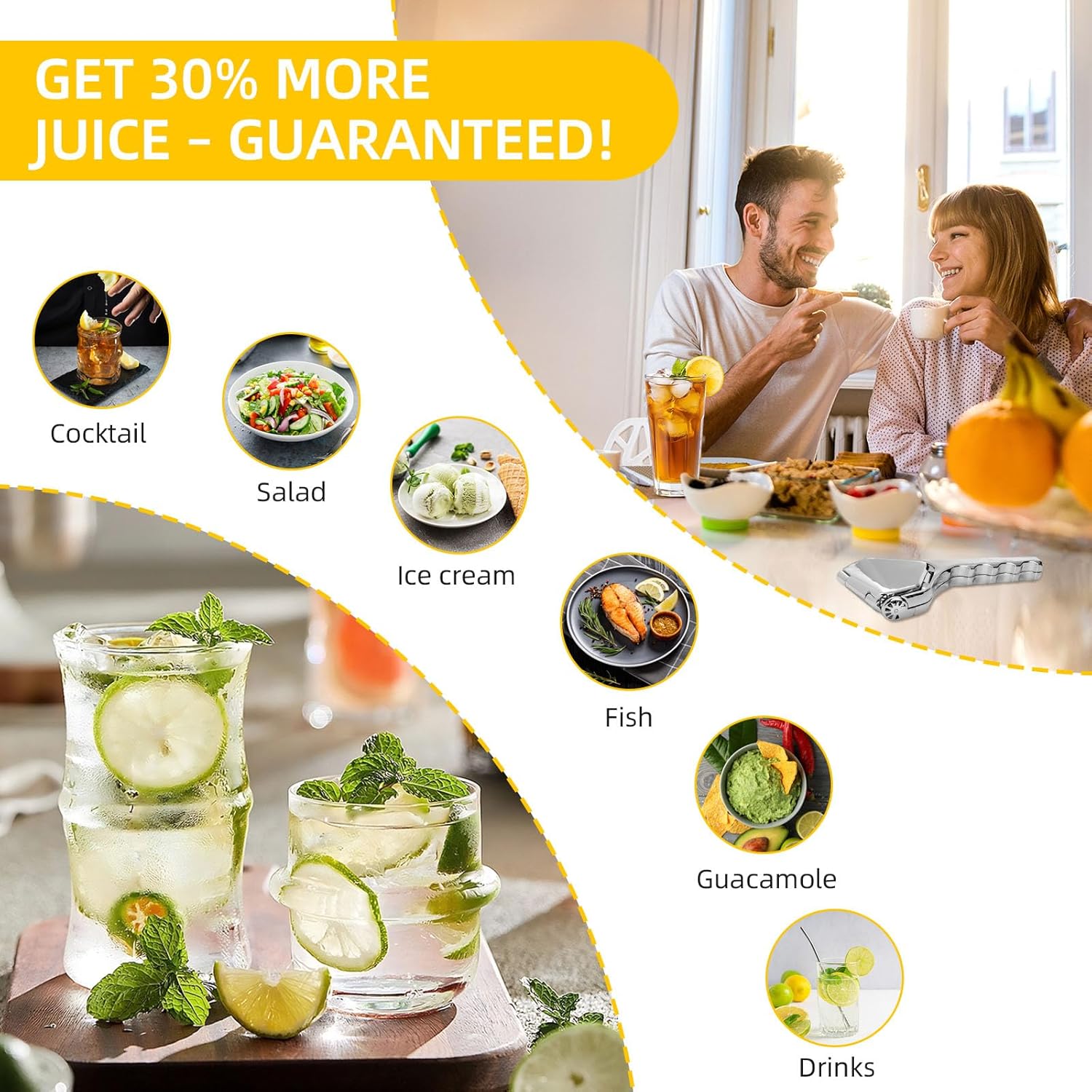 - 90% JUICE YIELD: The hand juicer features a three - way extrusion design, increasing the juice yield by 30%. The anti - slip grooves firmly grip the pulp, squeezing out the last drop. It is perfect for making lemonade, cocktails, or salad dressings