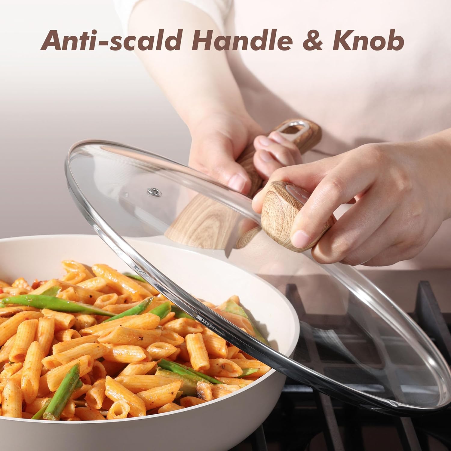 - HEALTHY CERAMIC FRYING PAN - Made of natural ceramic, SGS approved, free of intentionally added PFOA, PTFE, PFAS, PFOS, lead and cadmium, safe and healthy. No toxic substances will be produced even overheated. No coating to come off into your food.