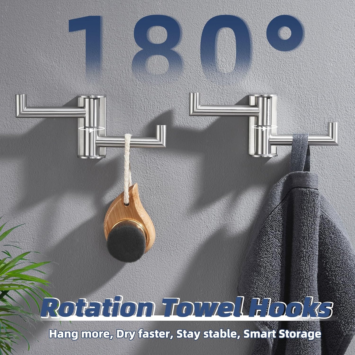 - 180° ROTATING FUNCTION: swivel coat hook allow for maximum flexibility and convenience in use. Adjust the hanging rod to hang more items. Fold against the wall when unused, save more space, enhance practicality