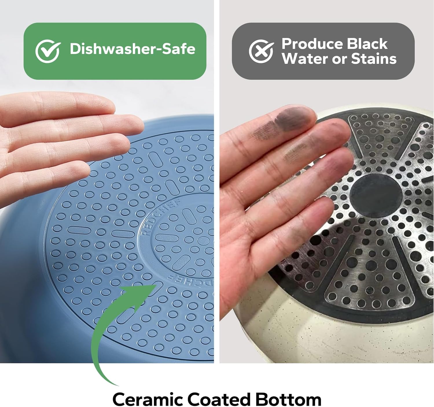 Redchef Nonstick Frying Pan Skillet, Ceramic Non-Stick Saute Pans, 9.5 inch Cooking Fry Pan with Stay Cool Handle, All Stovetops, Dishwasher/Oven Safe, PFAS-Free, Non Toxic (Blue)