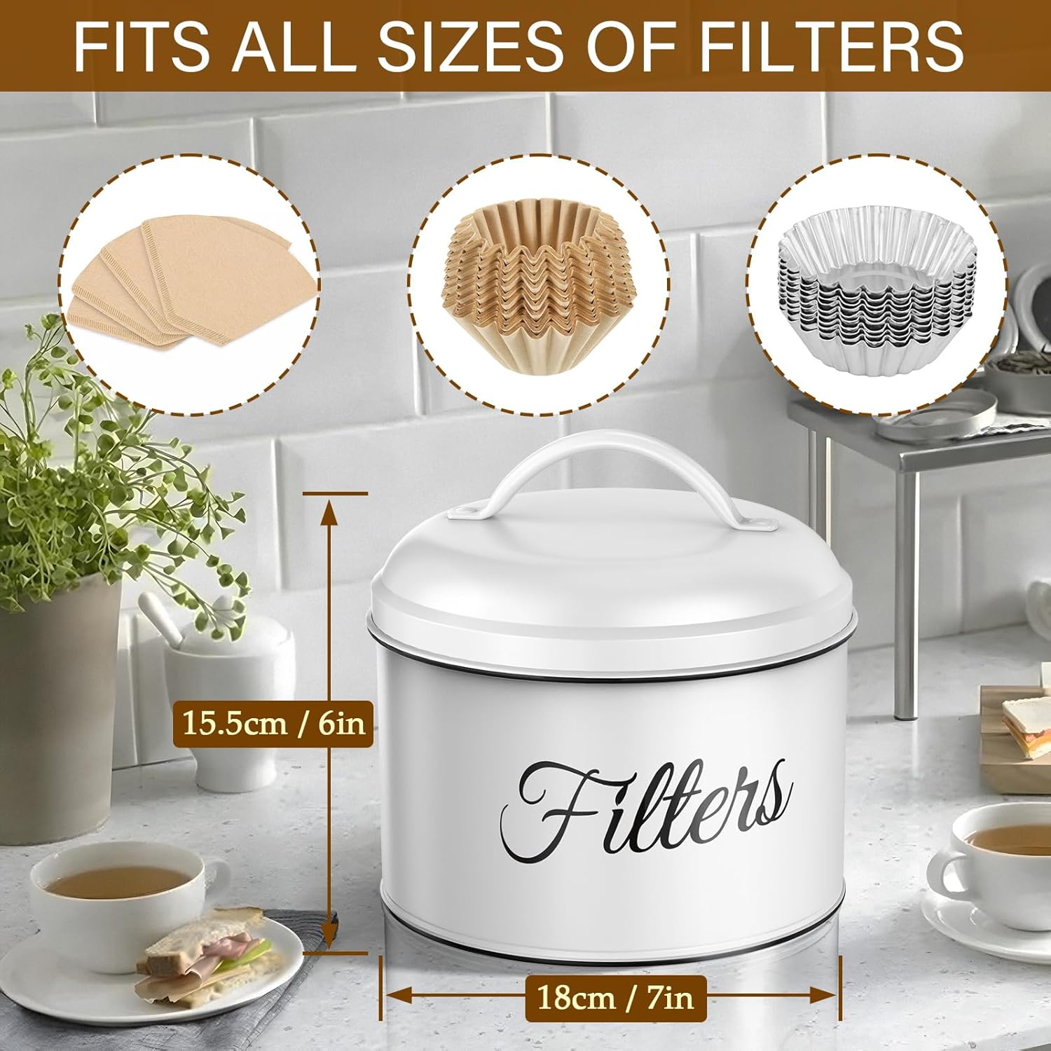 - Retaining Design: Measuring 6.2" in diameter and 6" high, this round and cone coffee filter holder is designed to maintain the shape of your coffee filters. Its stylish design adds a touch of elegance to your home or coffee bar, making it a functional and attractive coffee storage container