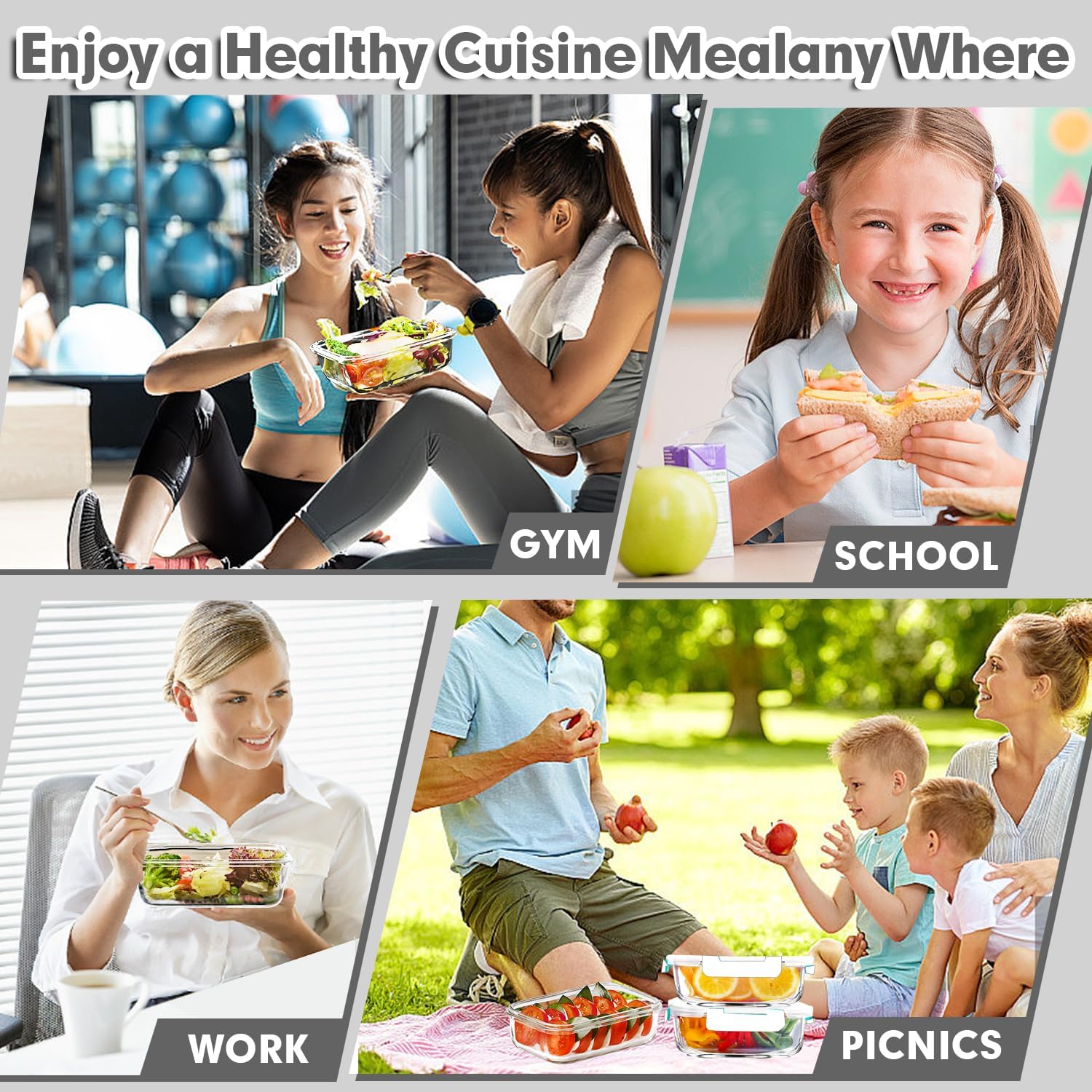 - SAFE & PORTABLE: Compared to ordinary plastic meal prep containers, our glass meal prep containers are non-toxic and long-lasting, won’t absorb food flavors, or stains, and make them easy to clean. Perfect sizes and shapes are perfect for various occasions and events.
