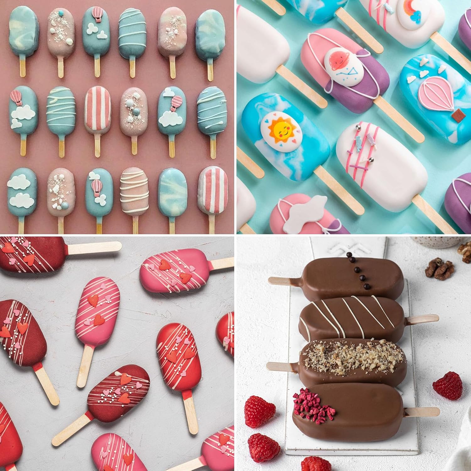 - Let's DIY: No matter Summer or Winter, you can use our molds to make delicious snacks; They can be used as cake pop molds and ice cream bar mold; Add fruit, juice, milk, or yogurt into the molds, you can enjoy different flavours that you like