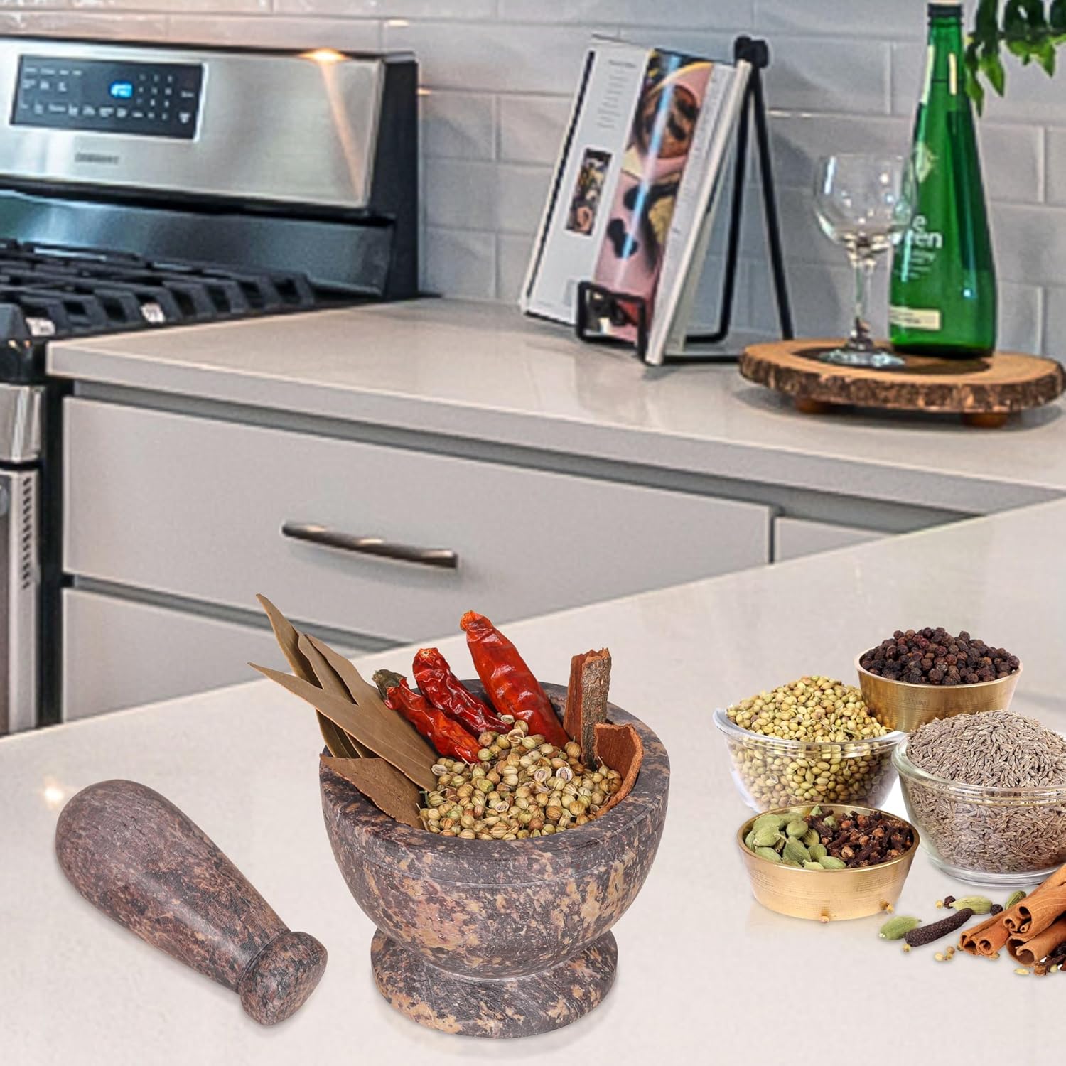 Mortar and Pestle, Made of Heavy Duty Polished Hard Stone, Natural Stone Grinder for Spices, Pastes, Herbs, Seasoning etc. (Classic Charm)