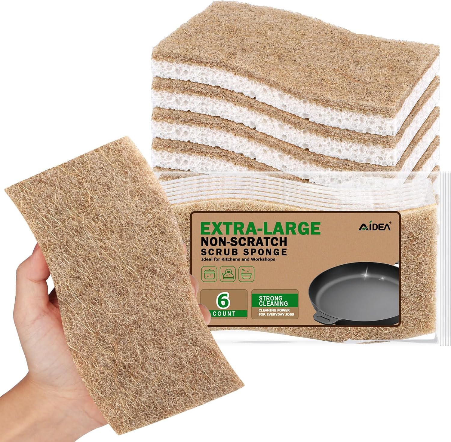AIDEA XL Scrub Sponges Non-Scratch, 6Count, Large Natural Sponge for Non Stick Cookware, Sponges Kitchen, Cellulose Cleaning Sponge for Dishes, Kitchen, Bathroom, Household