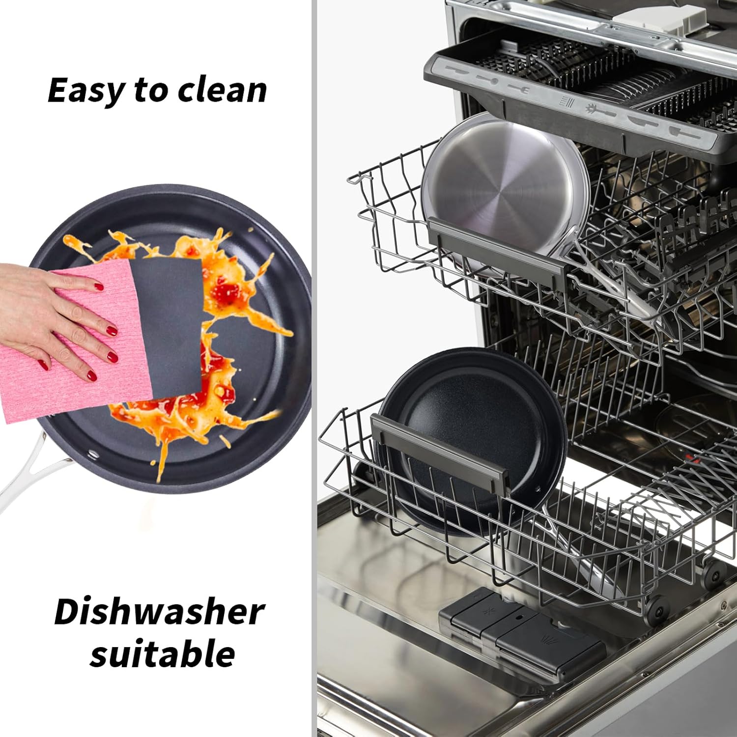 - Safe Ceramic Coating: Our smooth ceramic frying pan surface contains ZERO PTFE, PFOA, PFAS, lead, or cadmium. Healthier cooking starts here – certified safer than 95% of non stick frying pans, making it a smart choice for families seeking a clean, non-toxic ceramic pan.
