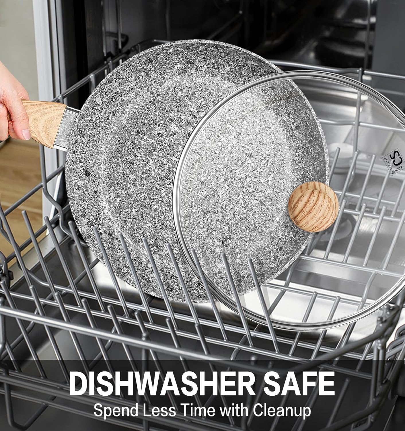- Nonstick Cooking Performance – The KOCH SYSTEME CS 12-inch nonstick frying pan features a gray granite coating inside and out for exceptional nonstick performance. This natural mineral coating is durable and 100% free of PFOA, lead, and cadmium.
