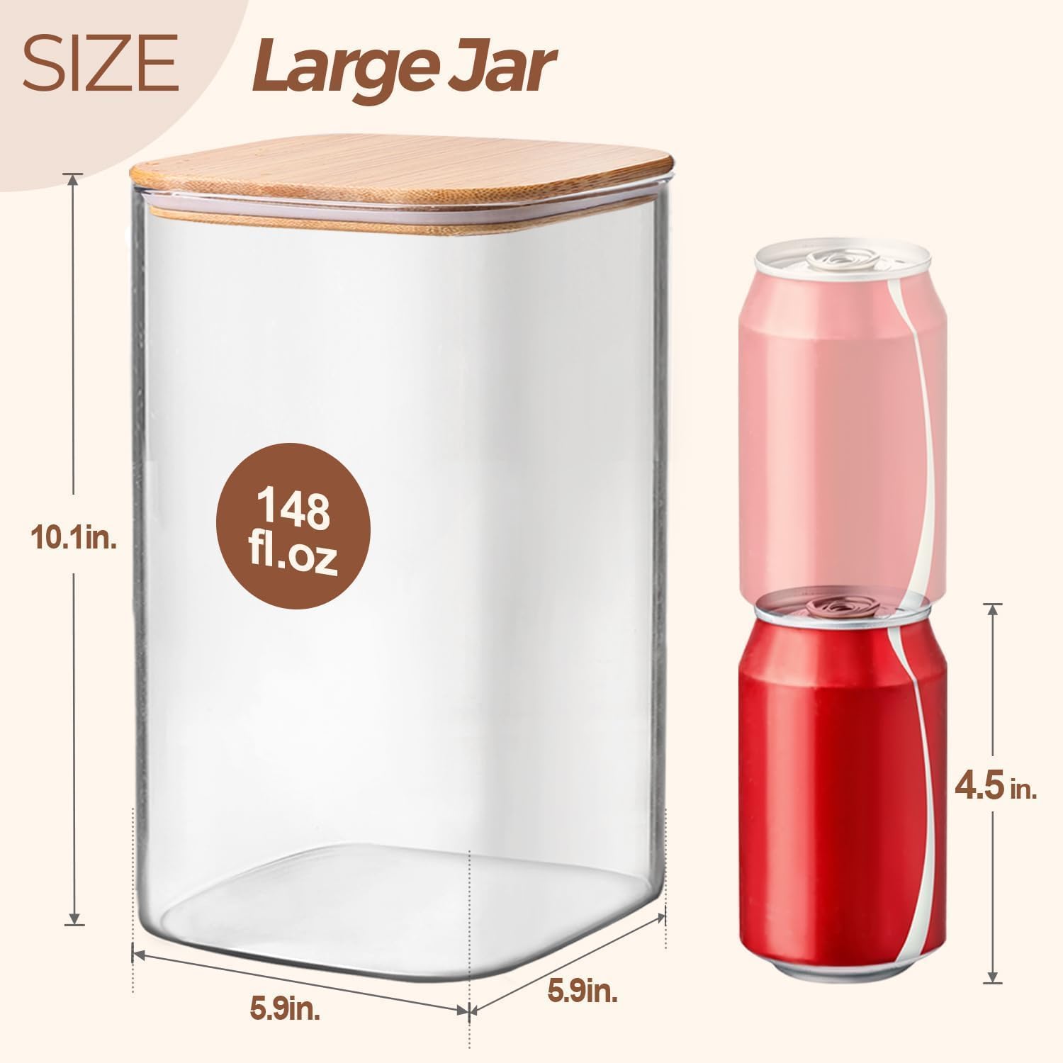 - Durable Glass Construction: Made from high-quality glass, these jars with lids are built to last and add a touch of sleek, modern style to your kitchen. They offer long-lasting use while enhancing your kitchen's aesthetic.