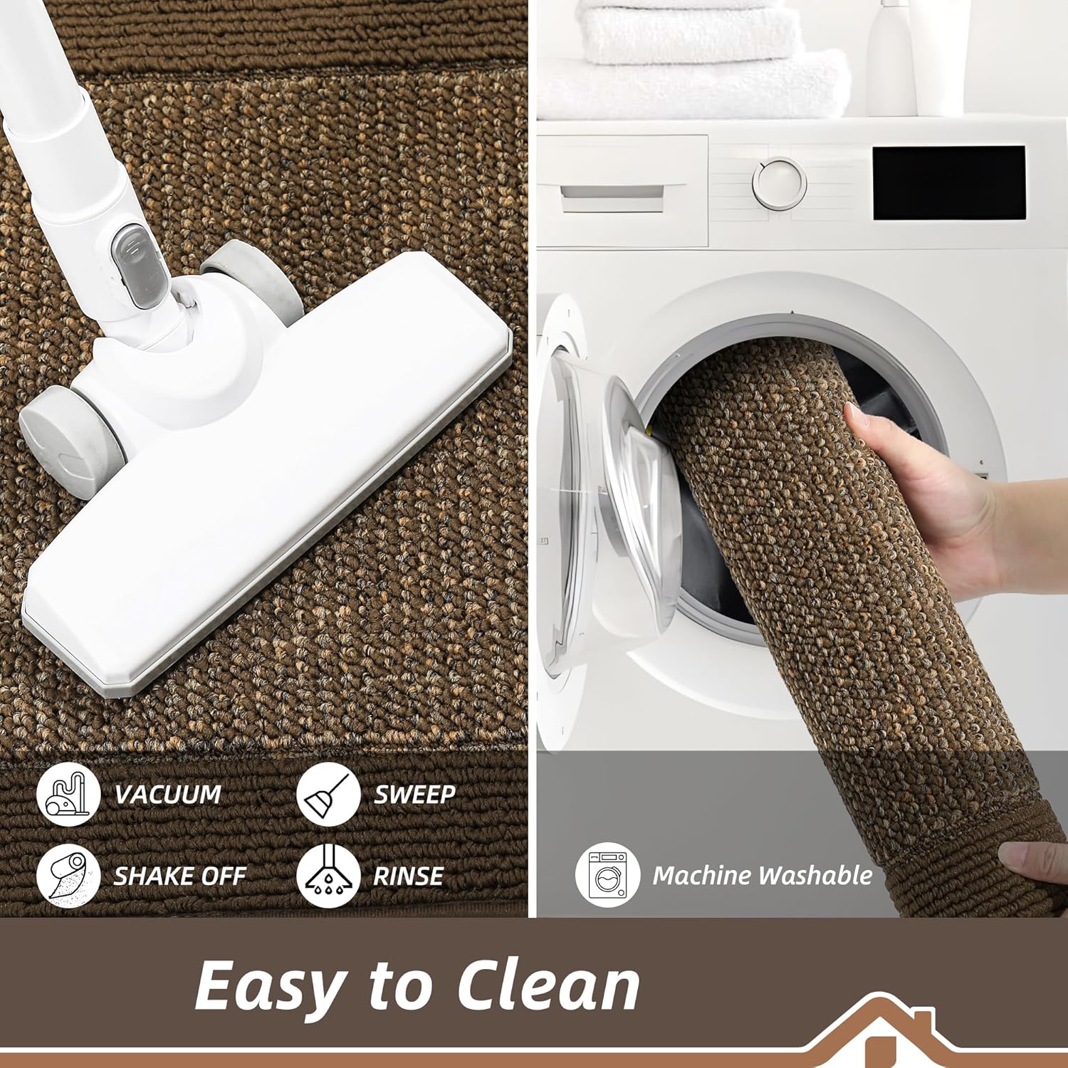 - Easy to Clean: The stain and fade resistant kitchen runner rug can be easily cleaned by a broom or vacuum cleaner. For a deeper clean, machine wash separately in cold water, using mild detergent. Tumble dry, low heat. Do not use bleach or fabric softener