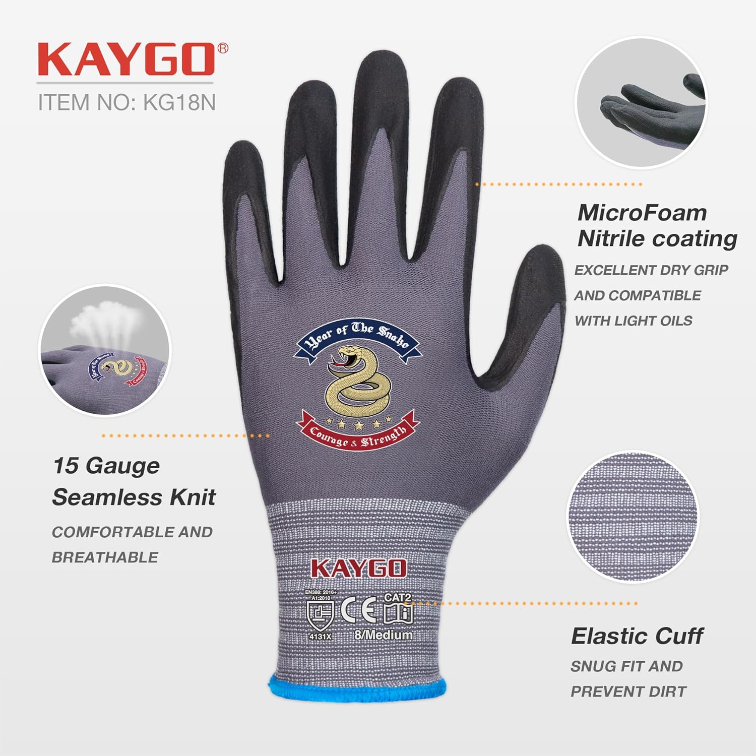 KAYGO Safety Work Gloves MicroFoam Nitrile Coated, 3 Pairs KG18NB,Seamless Knit Nylon Glove for Men and Women, Ideal for Automotive,Warehouse,Construction (M,Gray)