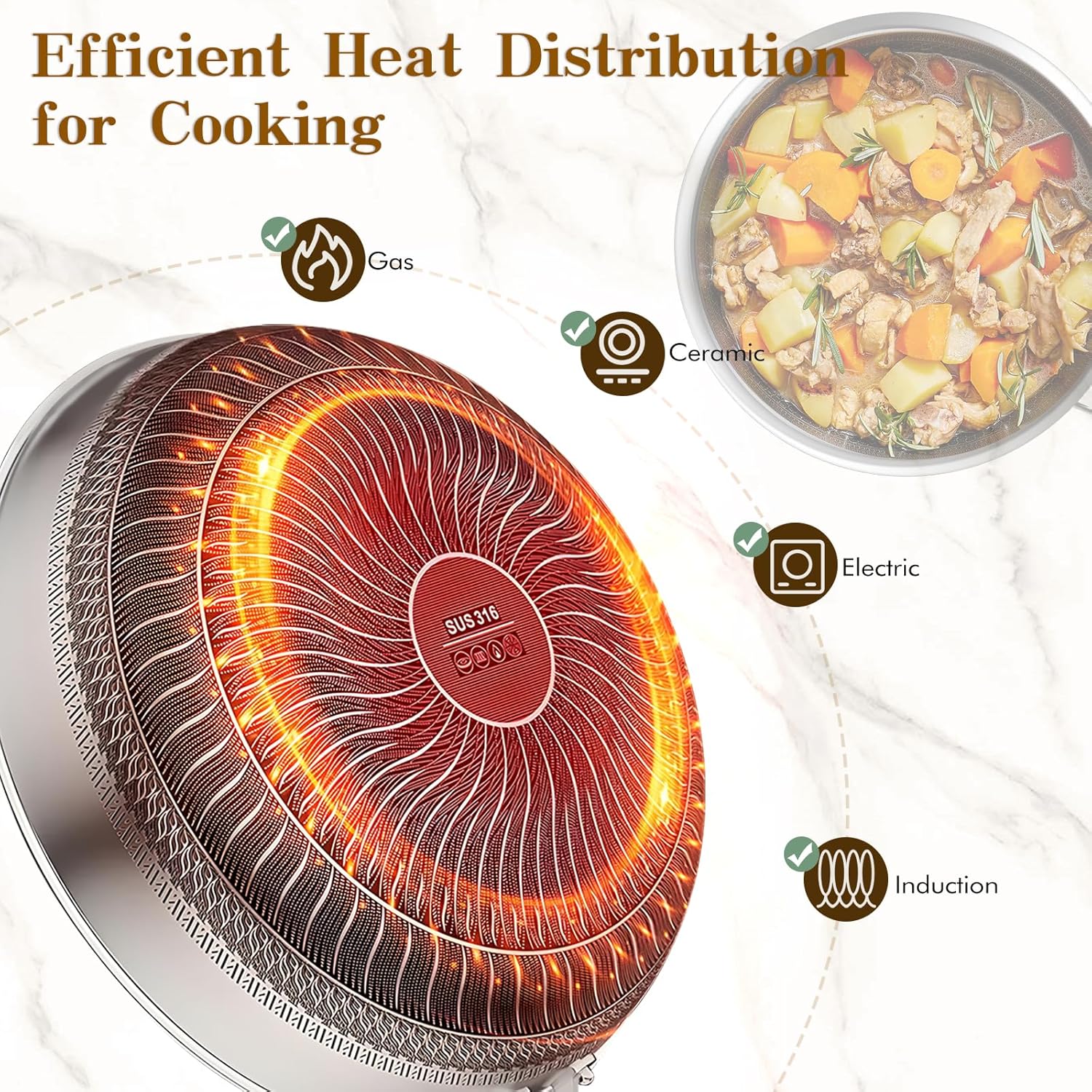 - 【No chemical coating, Healthy cooking-Technology for Superior Cooking】Our skillet features advanced tri-ply construction, combining aluminum sandwiched between two layers of high-quality stainless steel. This innovative design enhances conductivity for even heating while providing the durability and searing power of stainless steel
