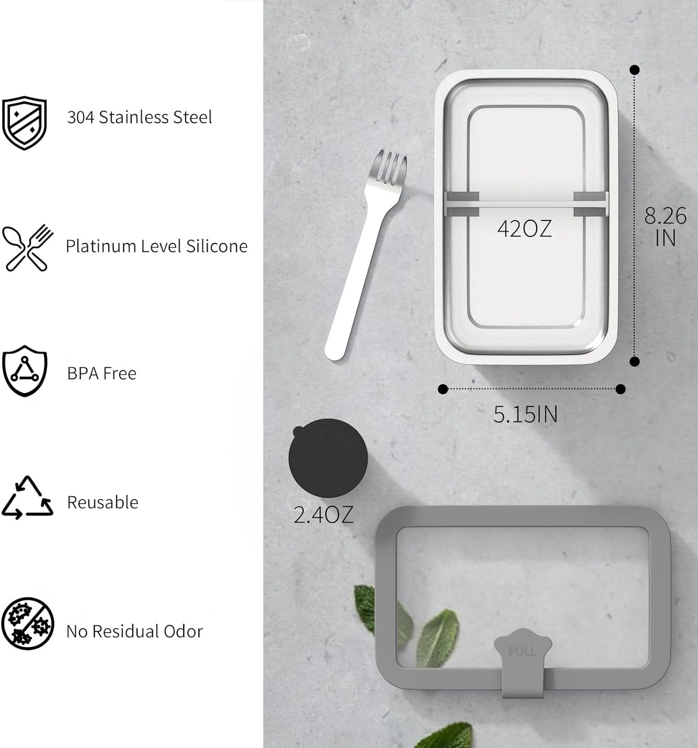 - All-in-One Lunch Solution: This stainless steel bento box for adult comes with a fork and a small sauce/snack/fruit cup, which can be easily put into a lunch bag, backpack or briefcase. Whether you carry it with you, go to work, travel, or fill it with snacks for a family outing, this lunch box can withstand all kinds of tests