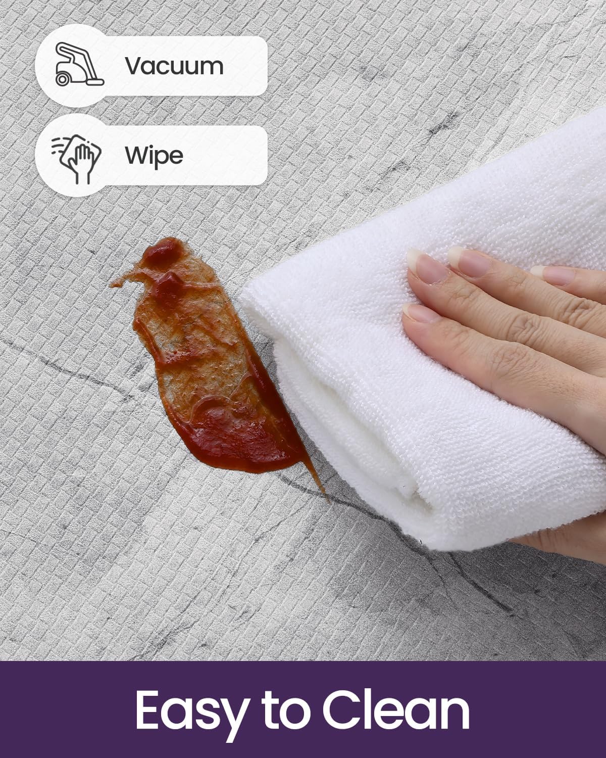 - Waterproof and Stain Resistant: The water resistant surface prevent spills, oils, or liquids from seeping through. Protect your hardwood floors or tiles while maintaining a pristine marble-patterned surface that resists stains