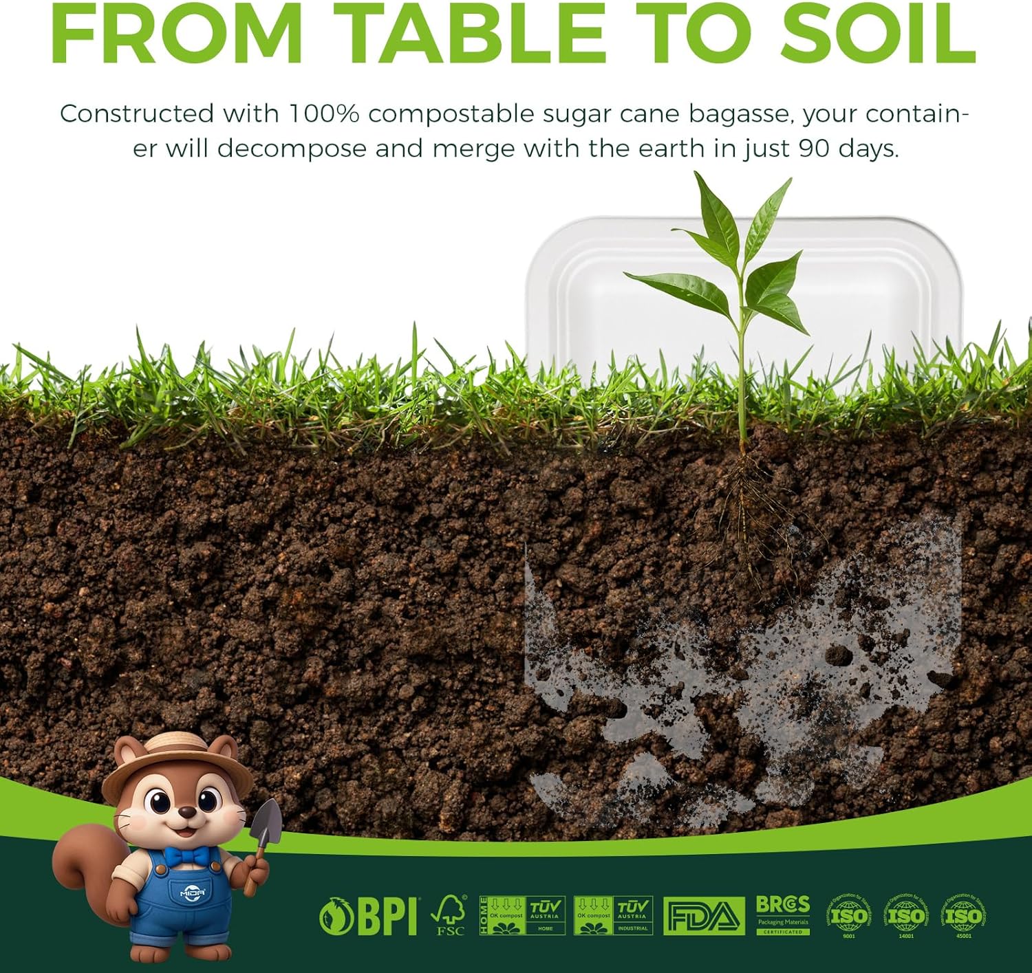 - EASIER AND FREE LIFE: Would you like to enjoy your wonderful dinner without spending a lot of time washing dishes? Choose our white compostable food trays and you can get a more freewheeling lifestyle. More time in preparing fresh and delicious cookings, and less time in constantly washing dishes. Lets' join the green future now!