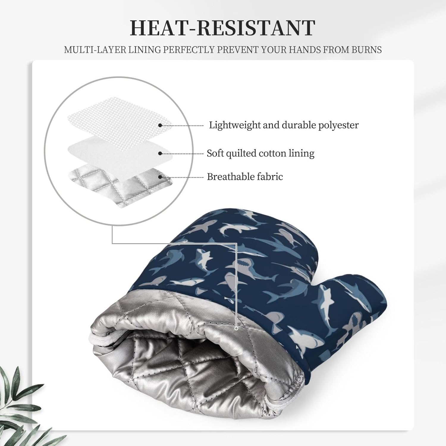 - NON-SLIP GRIP: The blue grey sharks oven mitts feature a textured, non-slip surface that enhances your grip and control when handling hot items. This provides you with a secure hold, reducing the risk of accidental slips or drops while transferring dishes from the oven or stovetop