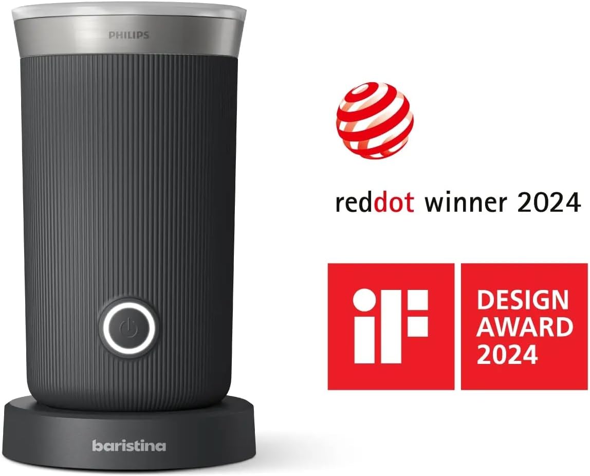 Philips Baristina Milk Frother - Foam Milk Perfectly. Hot and Cold. Dairy and Non-Dairy. Easy to Clean. for Philips Baristina Espresso Machines. Black (BAR311/60)
