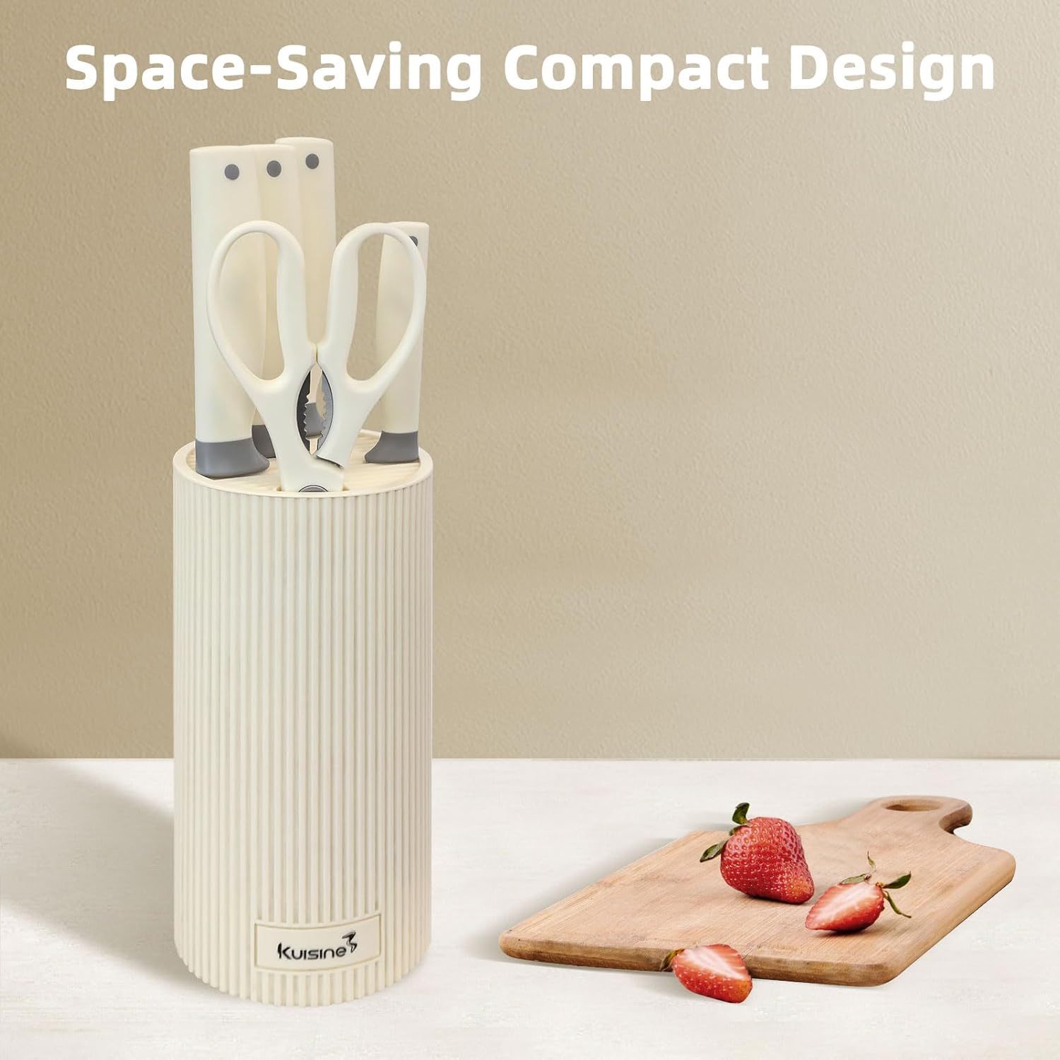 Kuisine Premium kitchen Knife Set with block,High Carbon Stainless Steel Forged,Ergonomic Non-slip Handle Knife Block Set(6PCS,Ivory)