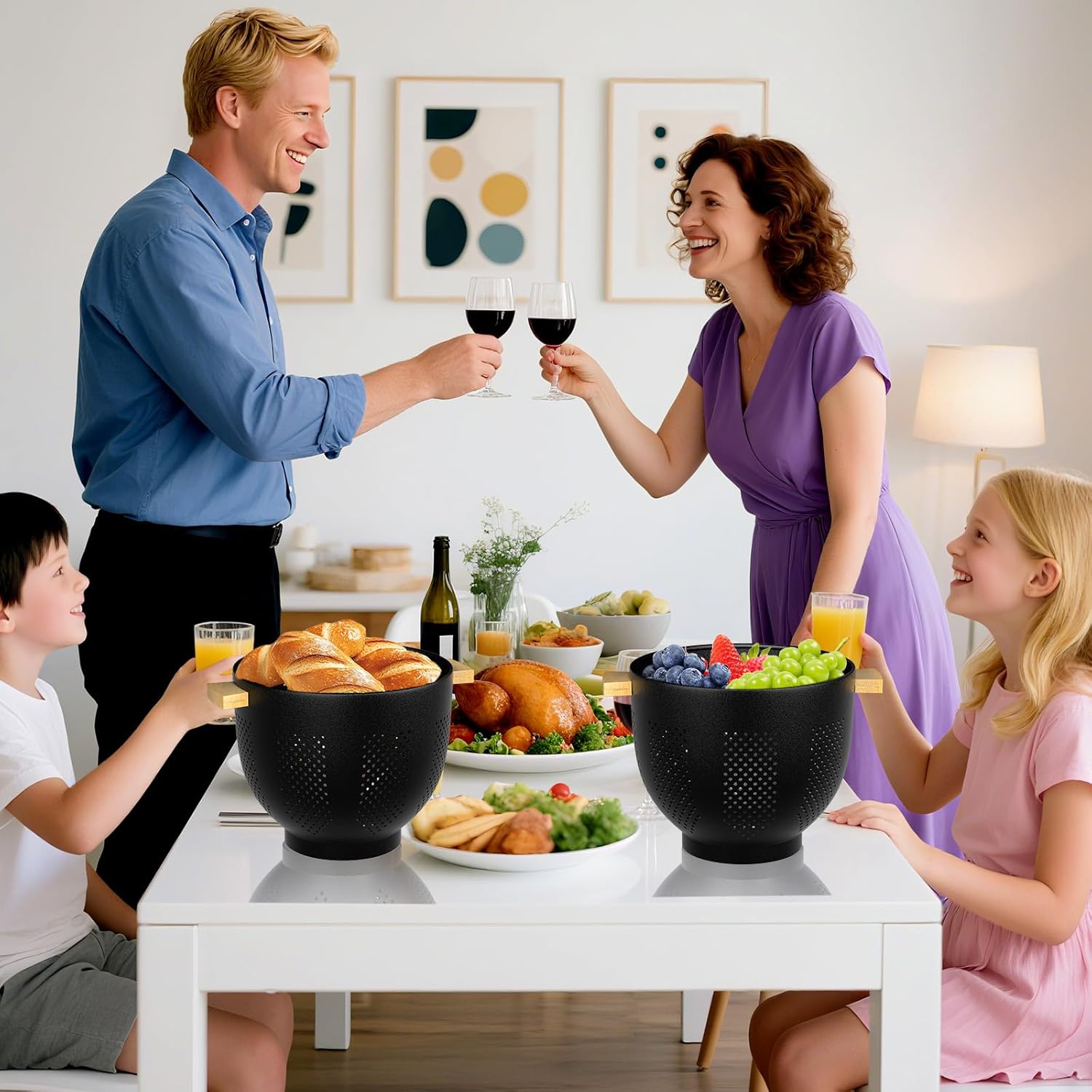 - Premium Food-grade & Rust-Proof Metal: Our strainer is crafted with heavy-duty and thick food-grade coated metal. This colander resists rust and wear for long-lasting use. The sleek matte black finish adds a modern touch to any kitchen, while the non-toxic material ensures safe rinsing for fruits, veggies, and more. A stylish yet practical upgrade for everyday cooking or gifting to health-conscious food lovers.