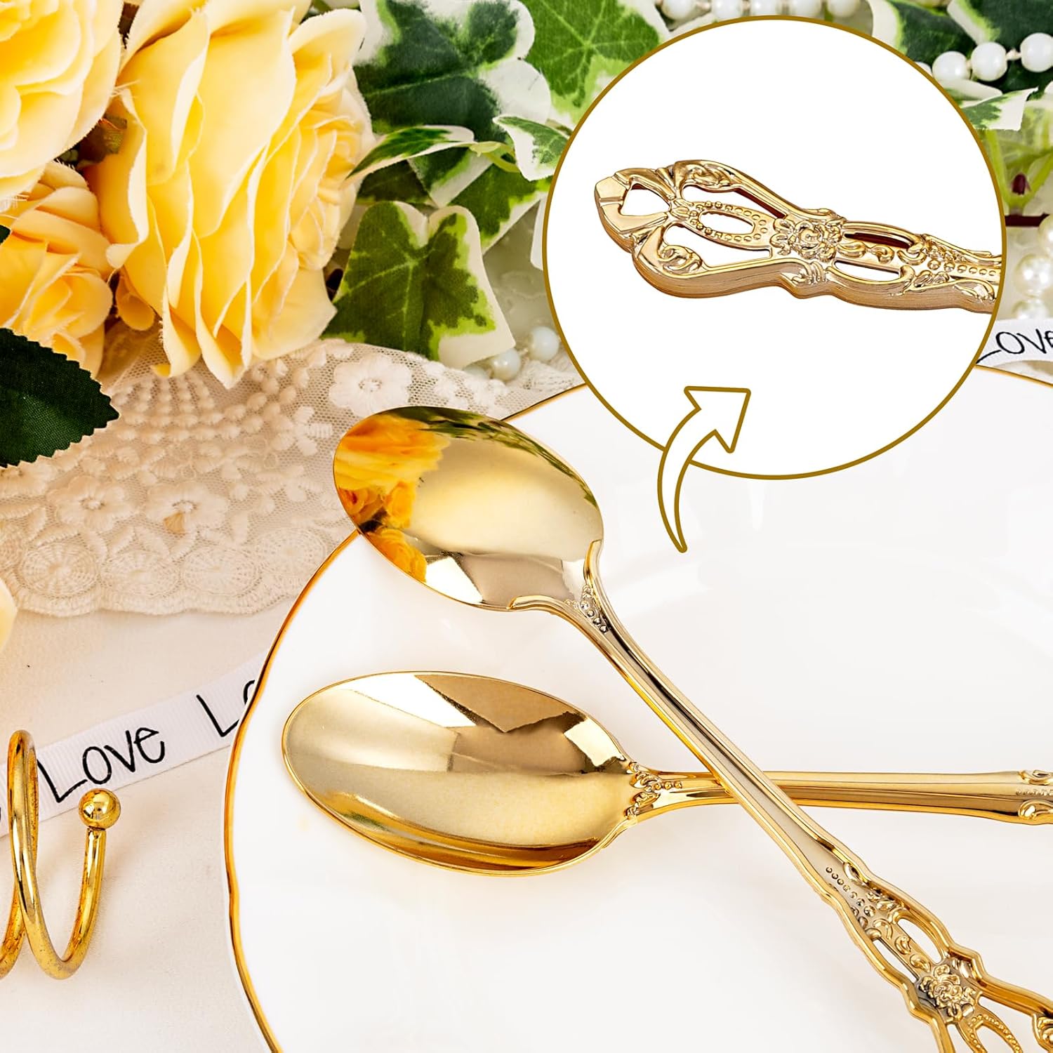 - Elegant Design: The vintage gold plastic spoons are adapt to the hollow design make these gold spoons disposable perfect for elevating any table setting, from weddings to themed parties. It includes 75 gold plastic spoons disposable, ensuring you have enough for every guest