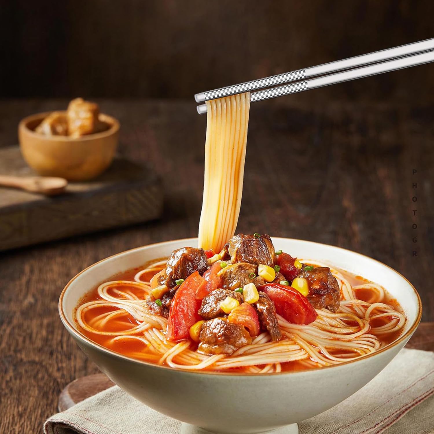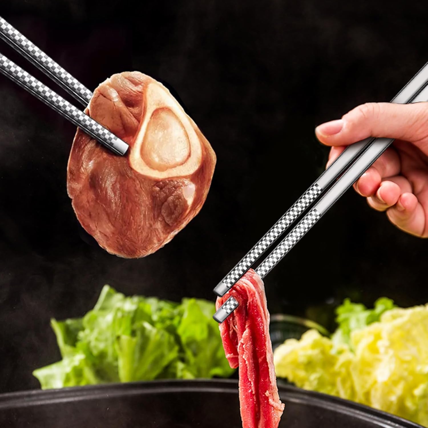 - 【Reusable Mentel Chopsticks】This 5 pairs of chopsticks with a net weight of 20 grams have an ultra-lightweight design and hollow structure for excellent heat insulation when cooking hot pots or steaming dishes. The tapered tips and balanced weight make them ideal reusable cooking chopsticks for novices and connoisseurs alike