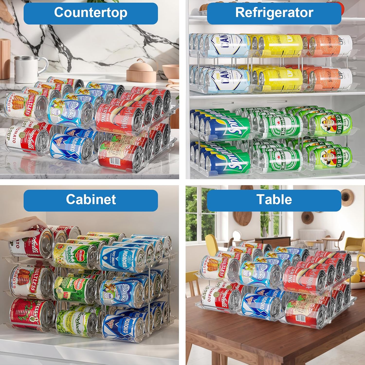 - 2️⃣【 Heavy-Duty Durability】The soda can organizer is made of high-quality crystal clear PET plastic, durable and firm, not easy to break. Super strong load-bearing capacity can hold 36 cans, making your kitchen/cabinet or refrigerator more tidy and organized