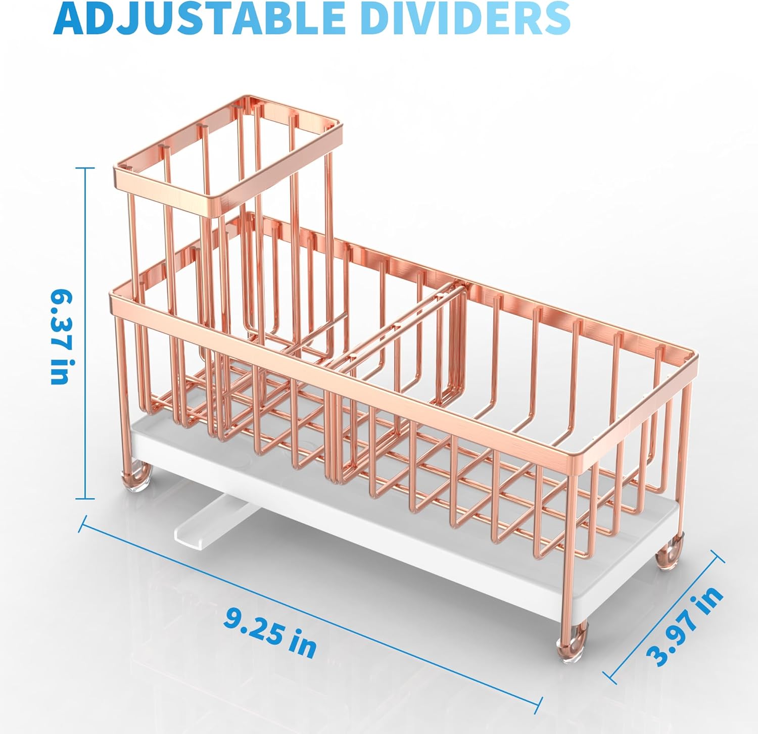 Cisily Rose Gold Sponge Holder for Kitchen Sink, Sink Caddy Organizer with High Brush Holder, Kitchen Countertop Organizers and Storage Essentials, Rustproof 304 Stainless Steel, Soap Dispenser