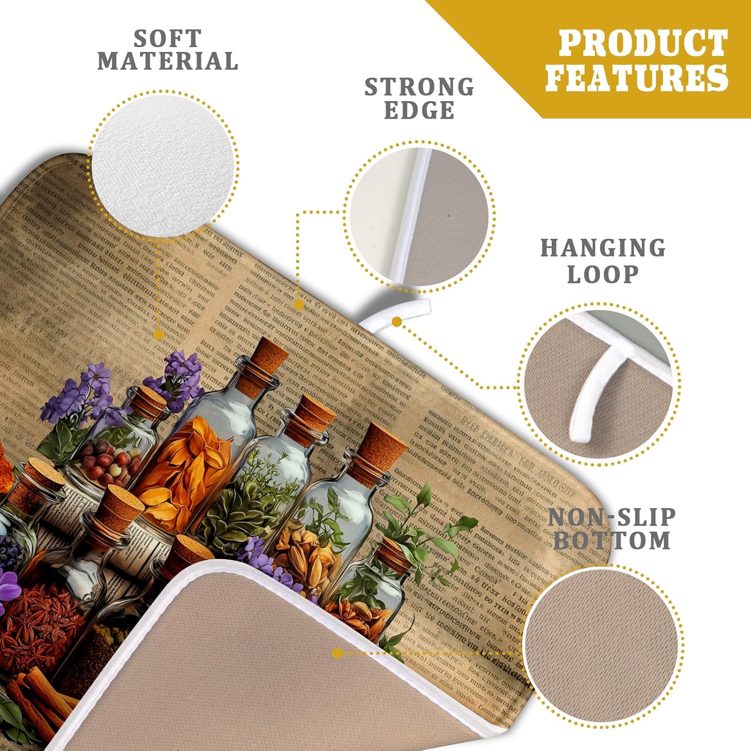 Vintage Kitchen Dish Drying Mat - Spice Bottle Decorative Dish Sink Rack Pad 16 X 18 Inch