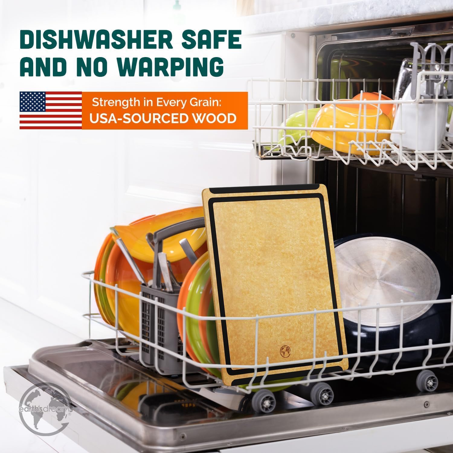 - CUTTING BOARDS DISHWASHER SAFE - Keeping your cutting boards clean can be quite challenging. However, with our cutting boards set, it is not. The cutting boards are made with non toxic materials are designed to be dishwasher-safe & non porous unlike Bamboo Cutting Boards, which are oftentimes non hygienic and not dishwasher friendly.