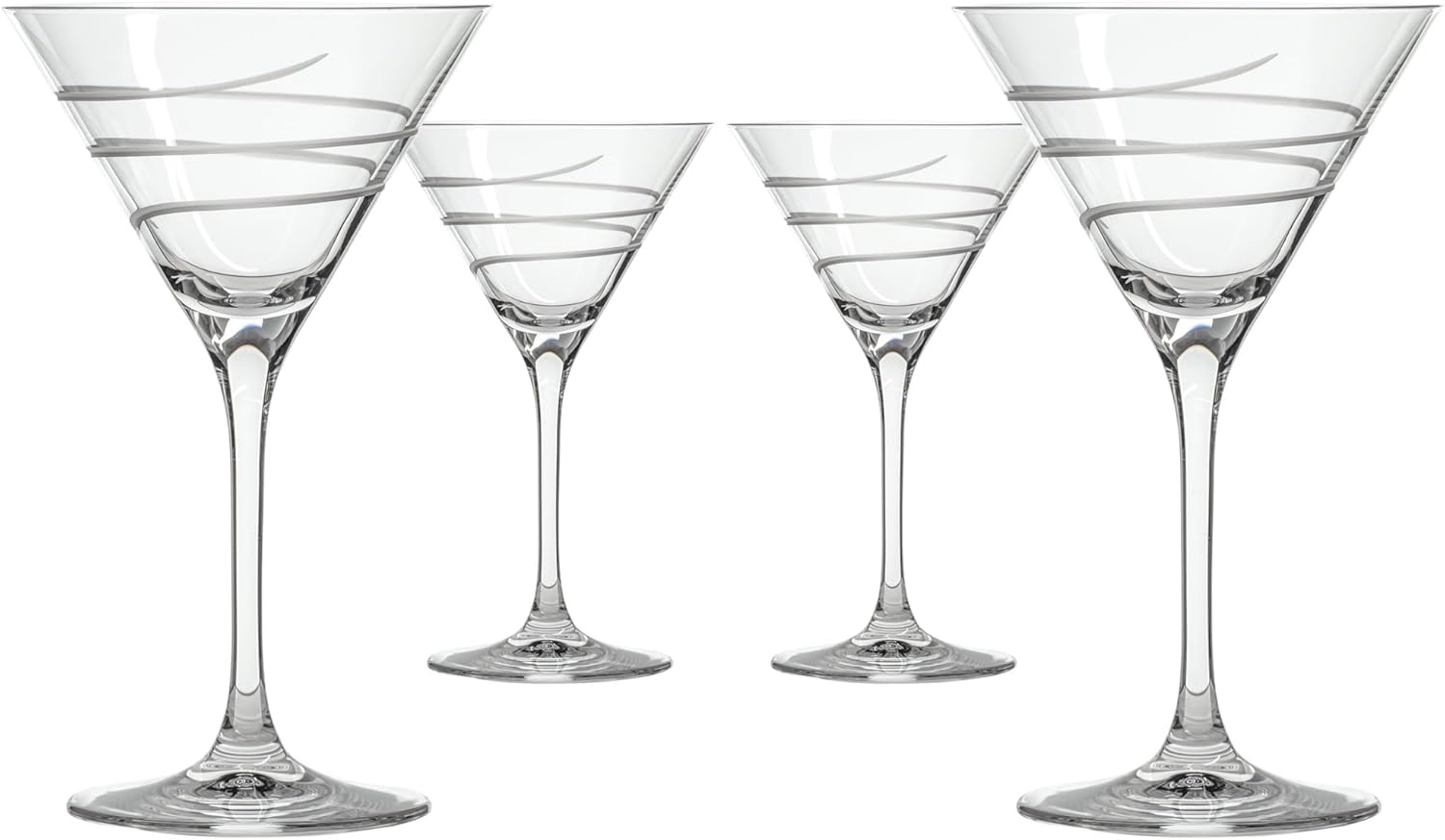 Rolf Glass Twist Martini Cocktail Glass | Set of 4 10oz Glasses | Lead-Free Glass | Engraved Martini Glasses | Proudly Made in the USA