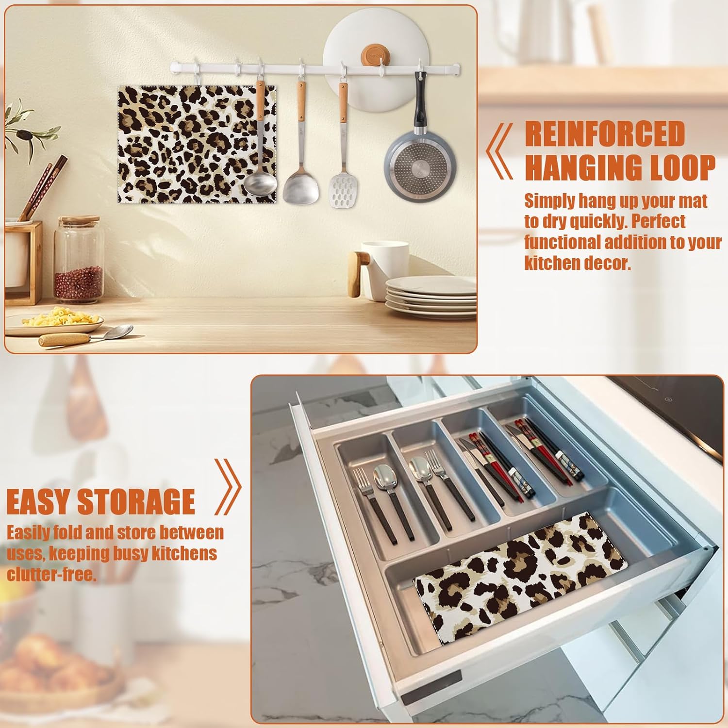 - 【Easy to Clean】The utensil drying mat can be cleaned by hand or machine to remove stains, the kitchen utensil drying mat to dry quickly without a machine. HD printed suede has excellent color lock, does not fade and can be reused many times.
